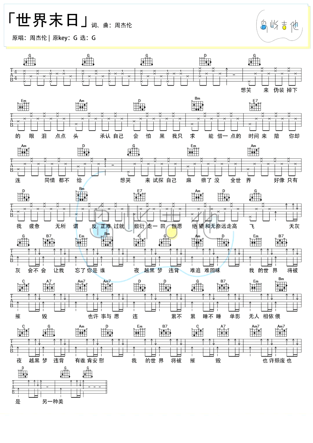 世界末日吉他谱 - 周杰伦 - G调吉他弹唱谱