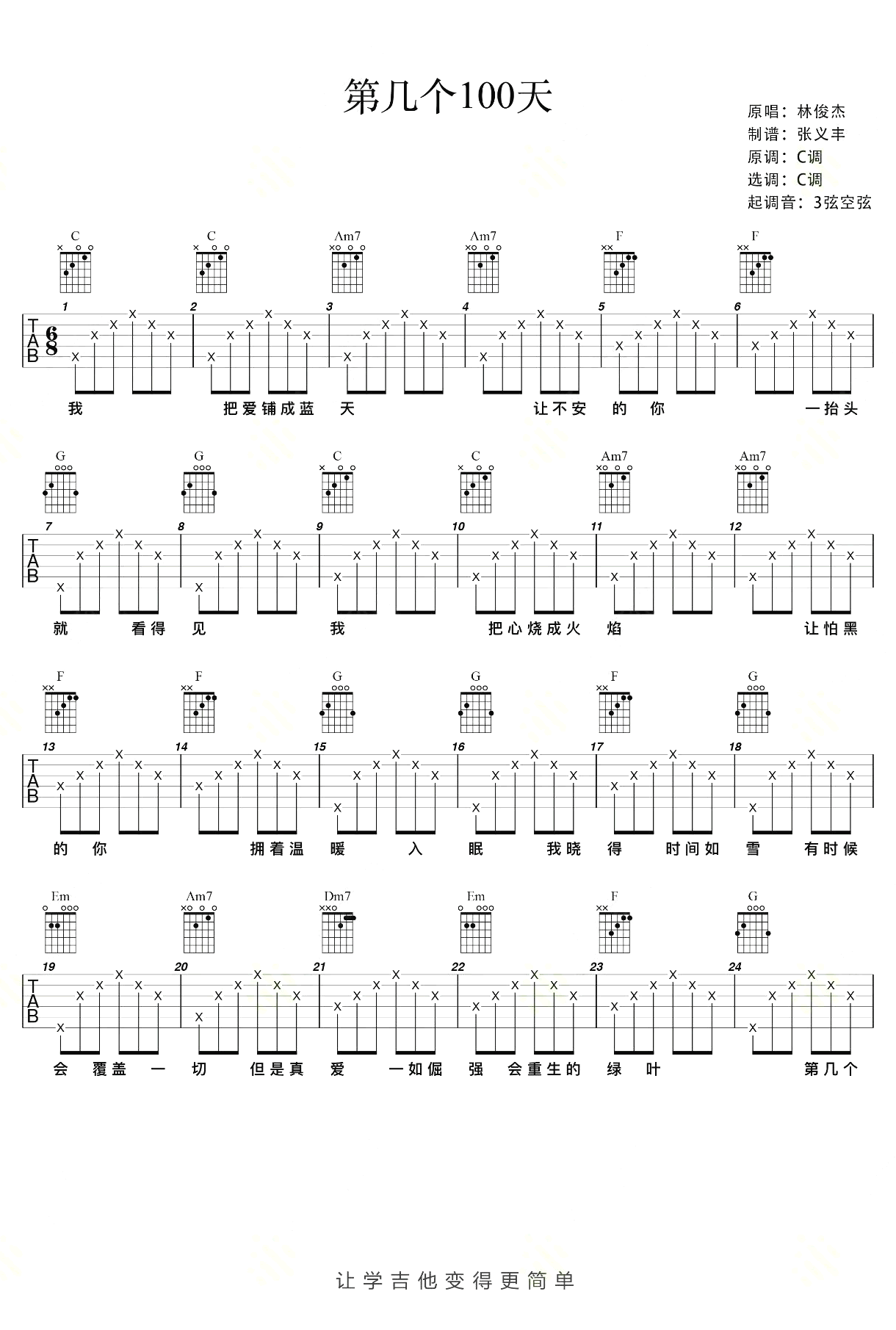 第几个100天吉他谱 - 林俊杰 - C调吉他弹唱谱