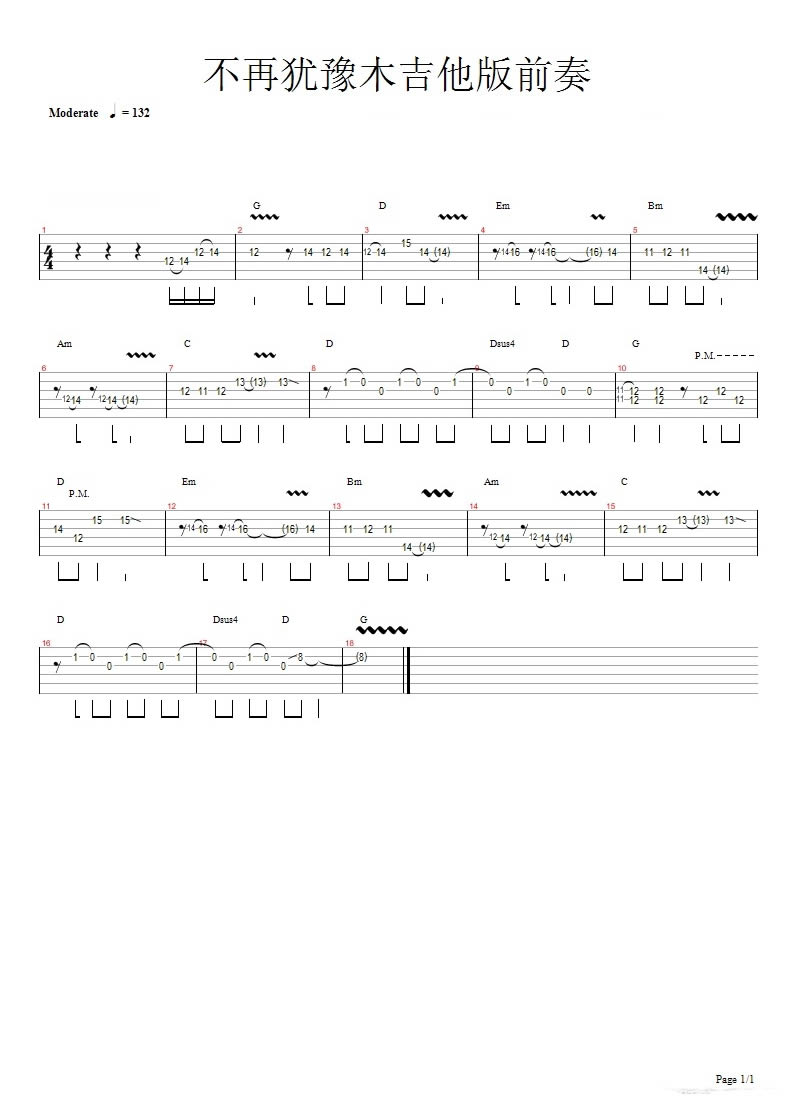 曲谱介绍: Beyond《不再犹豫》吉他独奏谱,共有1张高清图谱,免翻页排版设计。