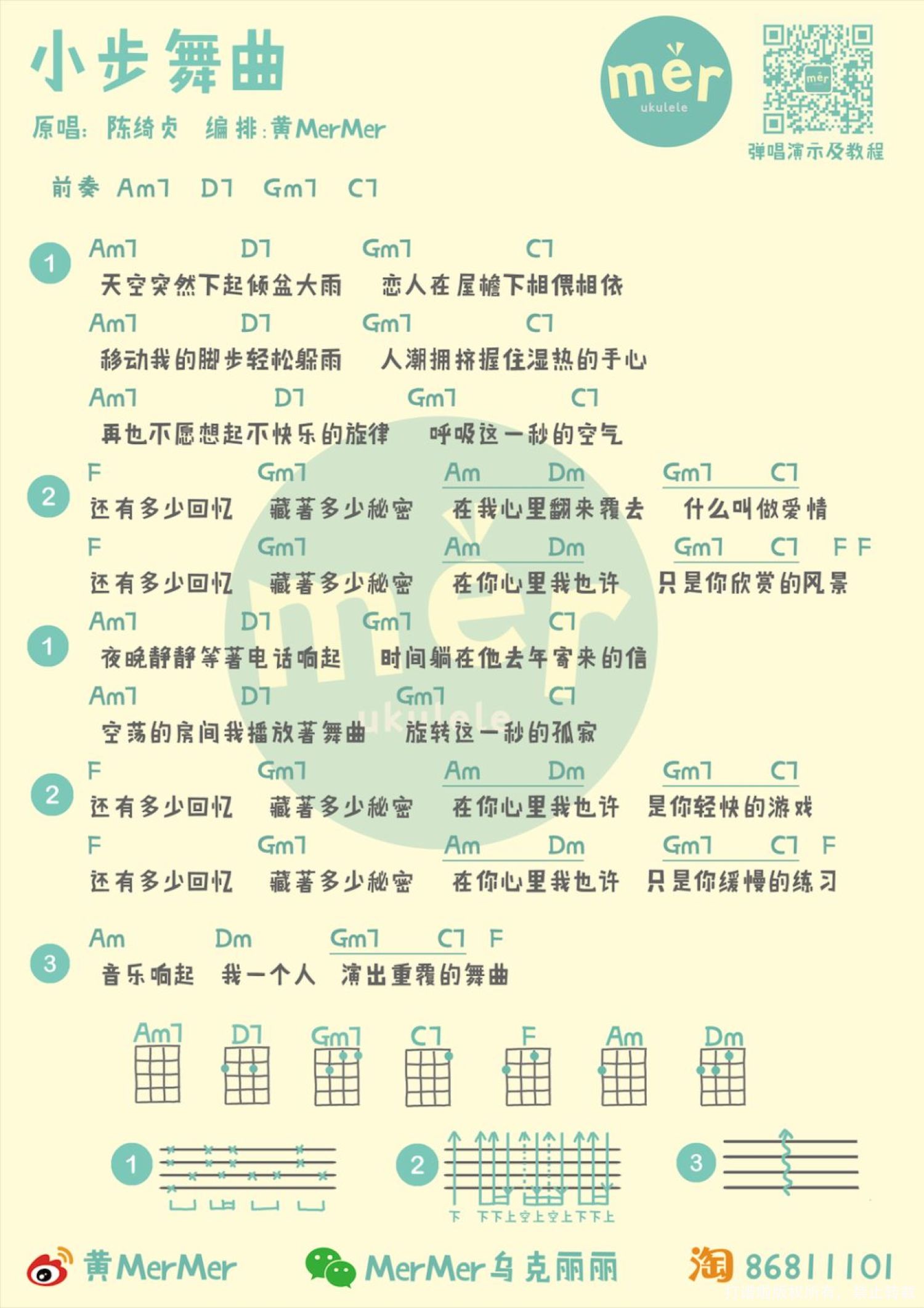 曲谱介绍: MerMer说 首先很荣幸这一首弹唱今天又上了网易云音乐的首页,可是评论里面不止一个人留言说我像贾玲!贾玲!请摸着你们的良心留言告诉我,我到底像不像贾玲!!   弹唱演示   弹唱教学   尤克里里谱
