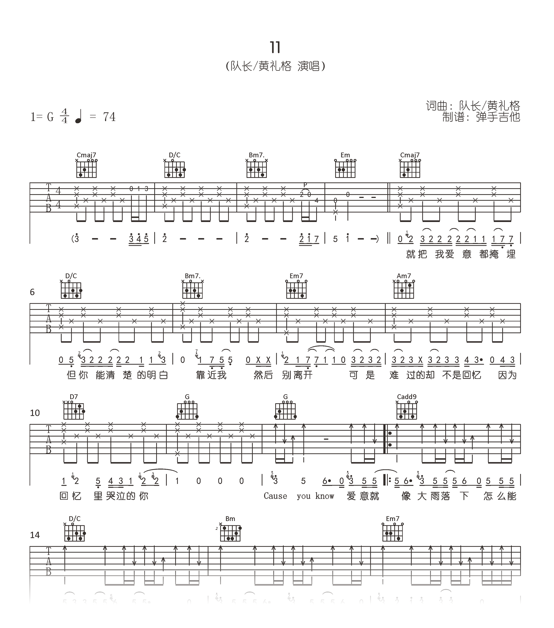 11吉他谱 - 队长/黄礼格 - G调吉他弹唱谱