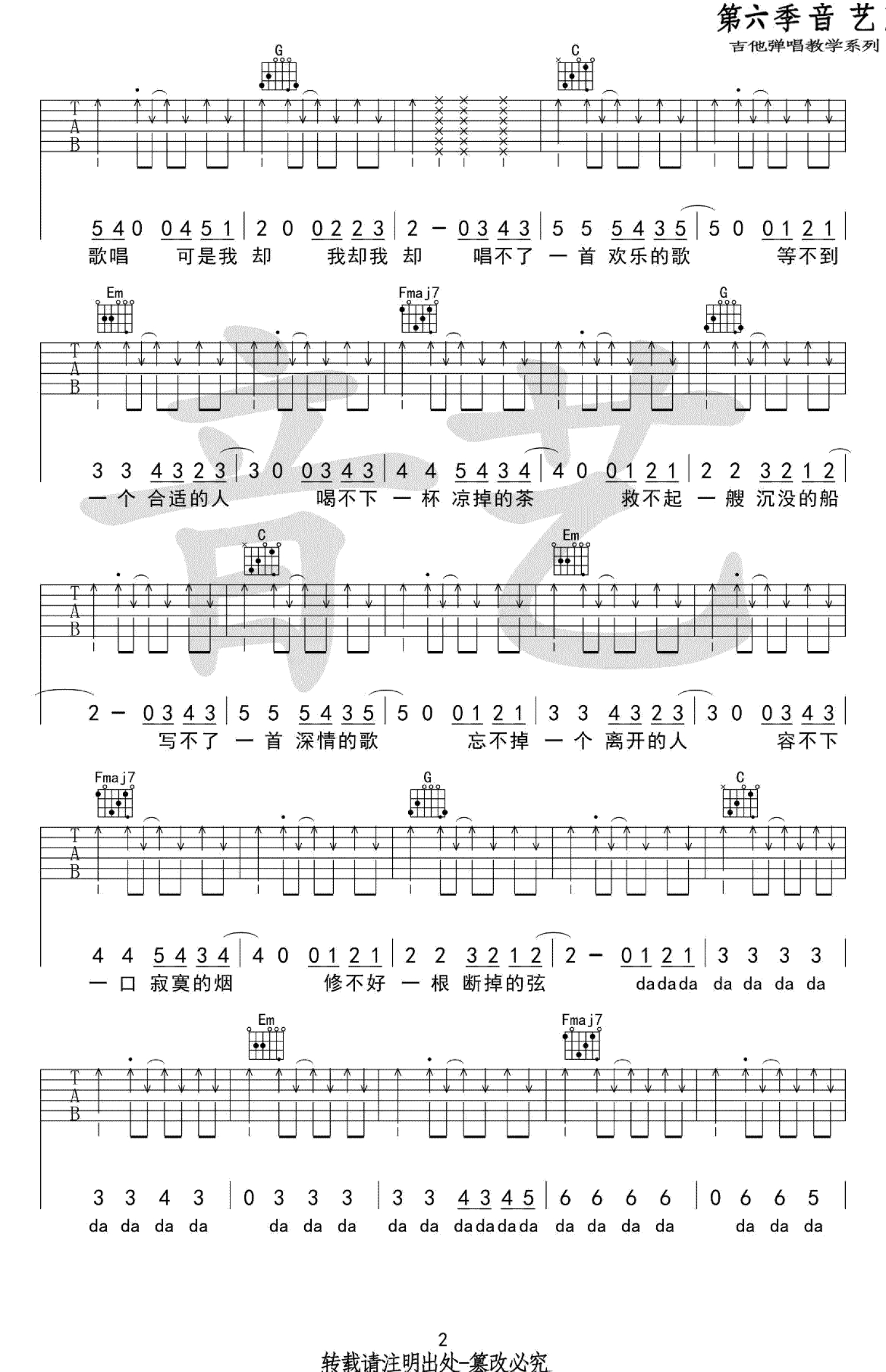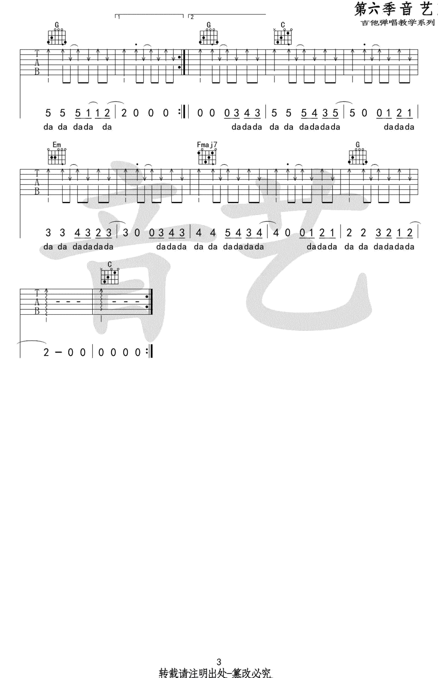 吉他弹唱C调来源:吉他专家890 浏览2018-03-19 13:34发布图谱共3页
