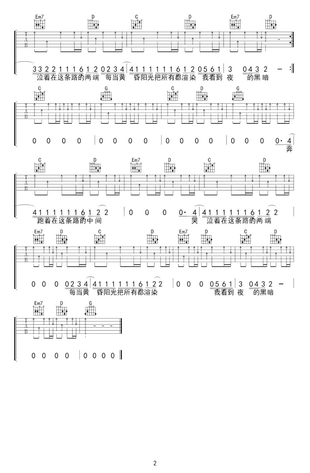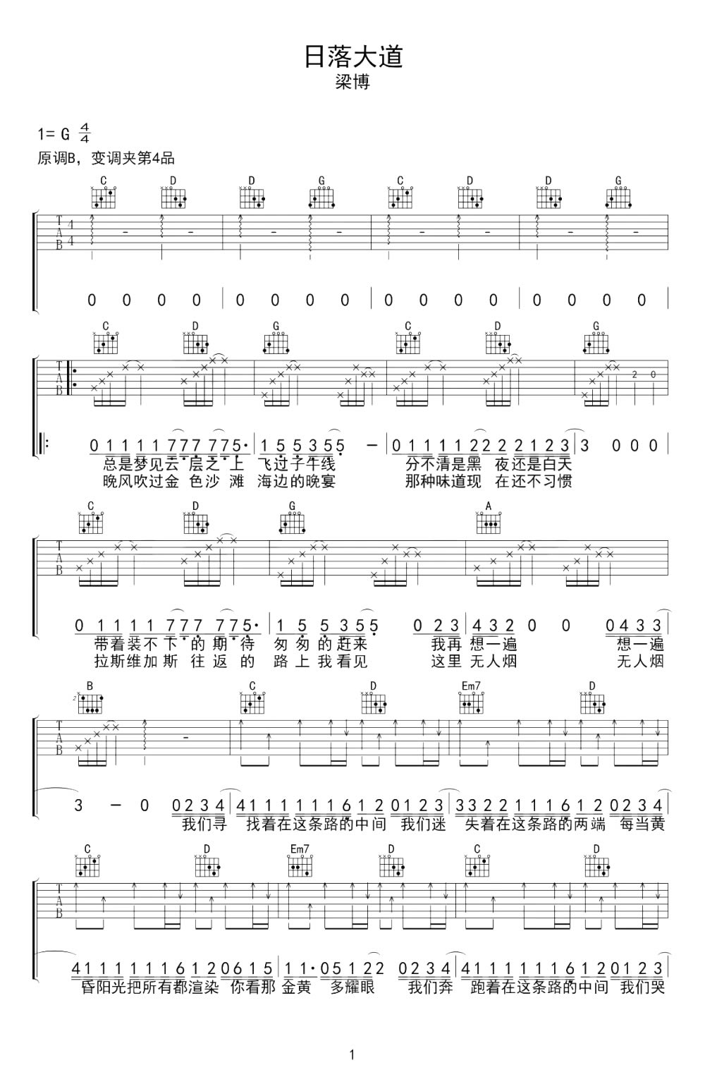 日落大道吉他谱 - 梁博 - G调吉他弹唱谱