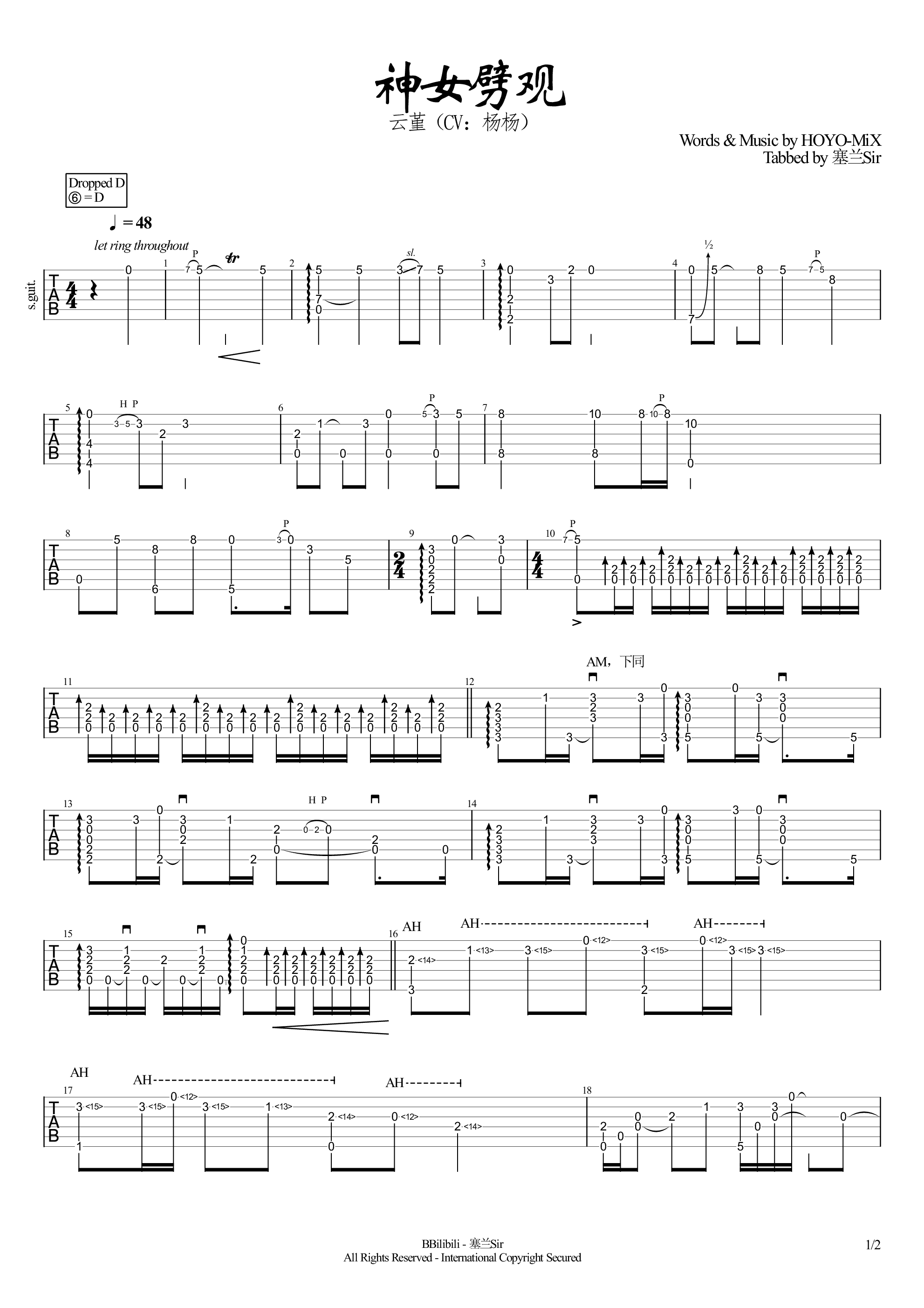 曲谱介绍: 云堇PV《原神》吉他独奏谱,共有2张高清图谱,免翻页排版设计。