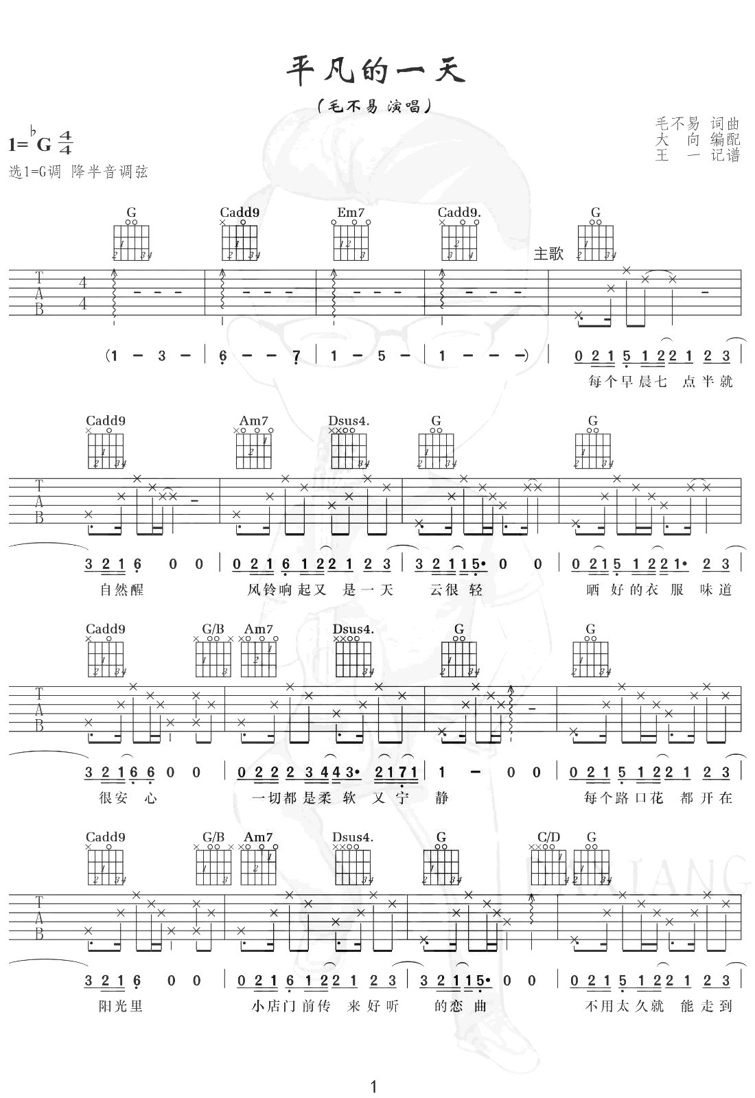 平凡的一天吉他谱 - 毛不易 - 吉他弹唱谱 - 原版