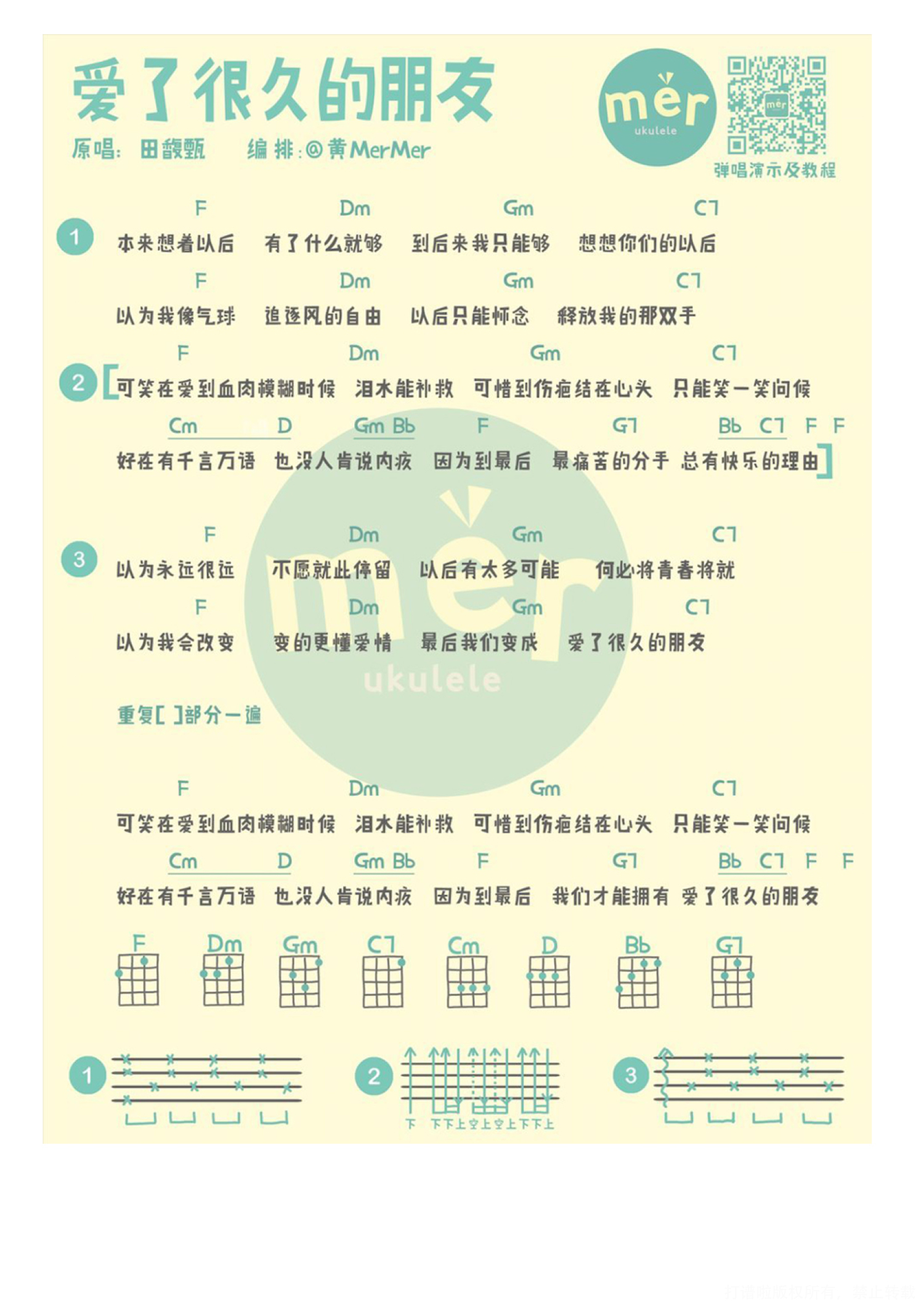 爱了很久的朋友尤克里里谱 - 田馥甄