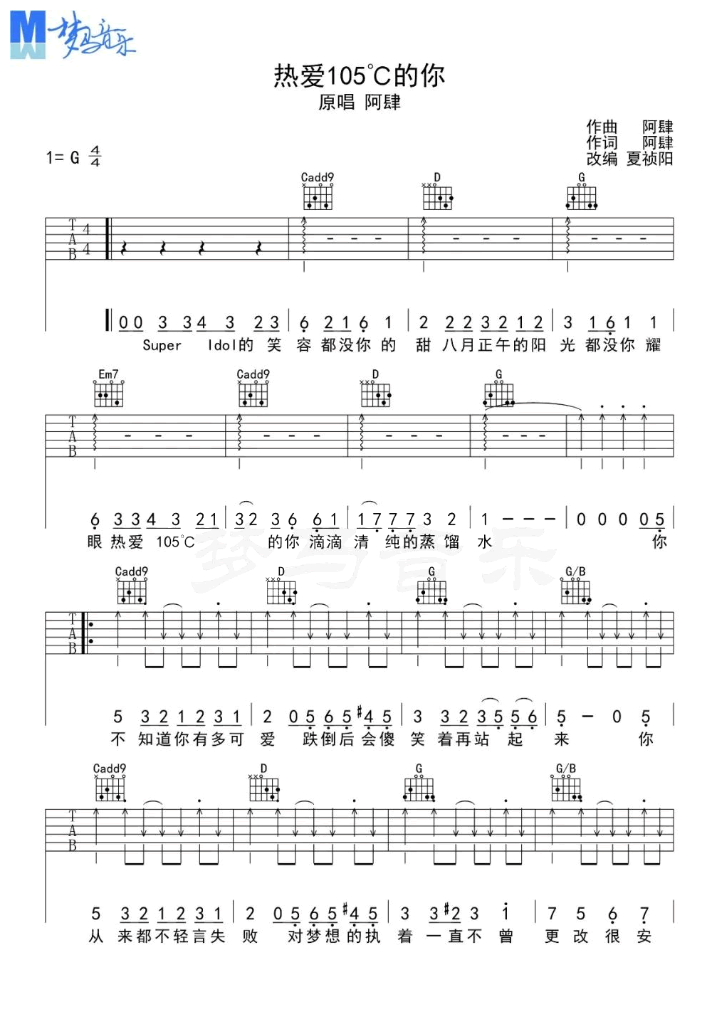 热爱105℃的你吉他谱 - 阿肆 - G调吉他弹唱谱