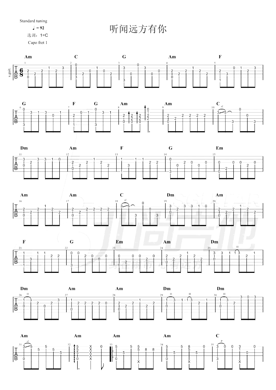 当前位置:琴谱网>吉他独奏>听闻远方有你