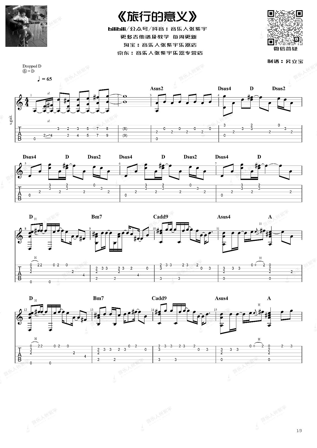 曲谱介绍: 陈绮贞《旅行的意义》吉他独奏谱,共有3张高清图谱。