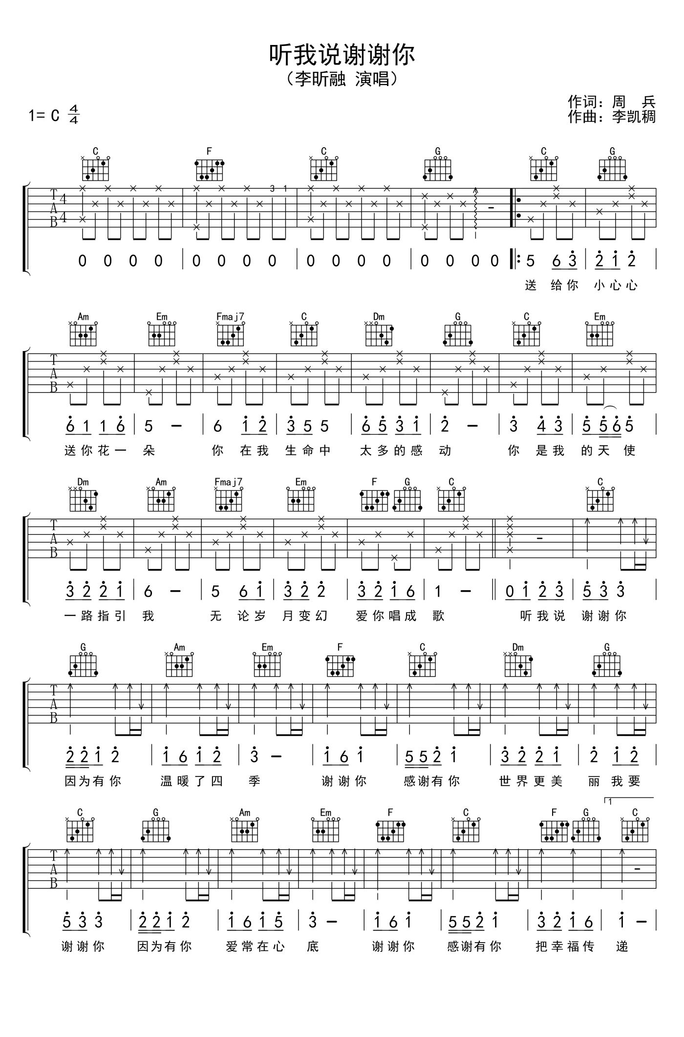 听我说谢谢你吉他谱 - 李昕融 - C调吉他弹唱谱