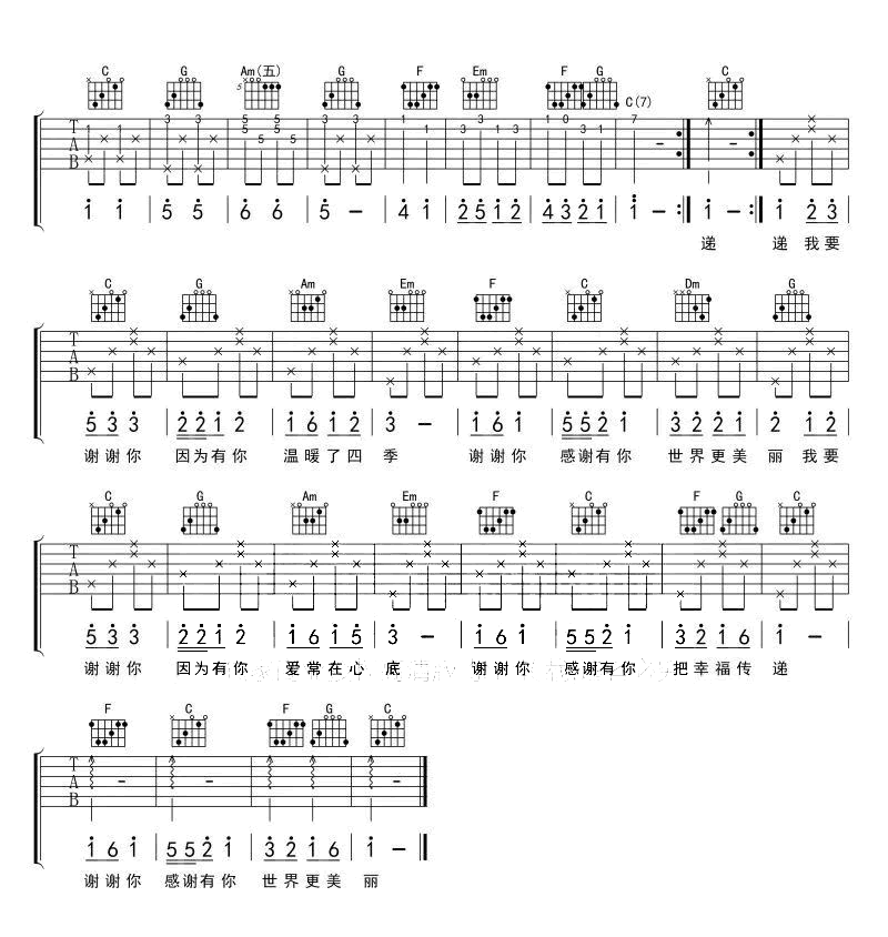 当前位置:琴谱网>吉他弹唱>听我说谢谢你