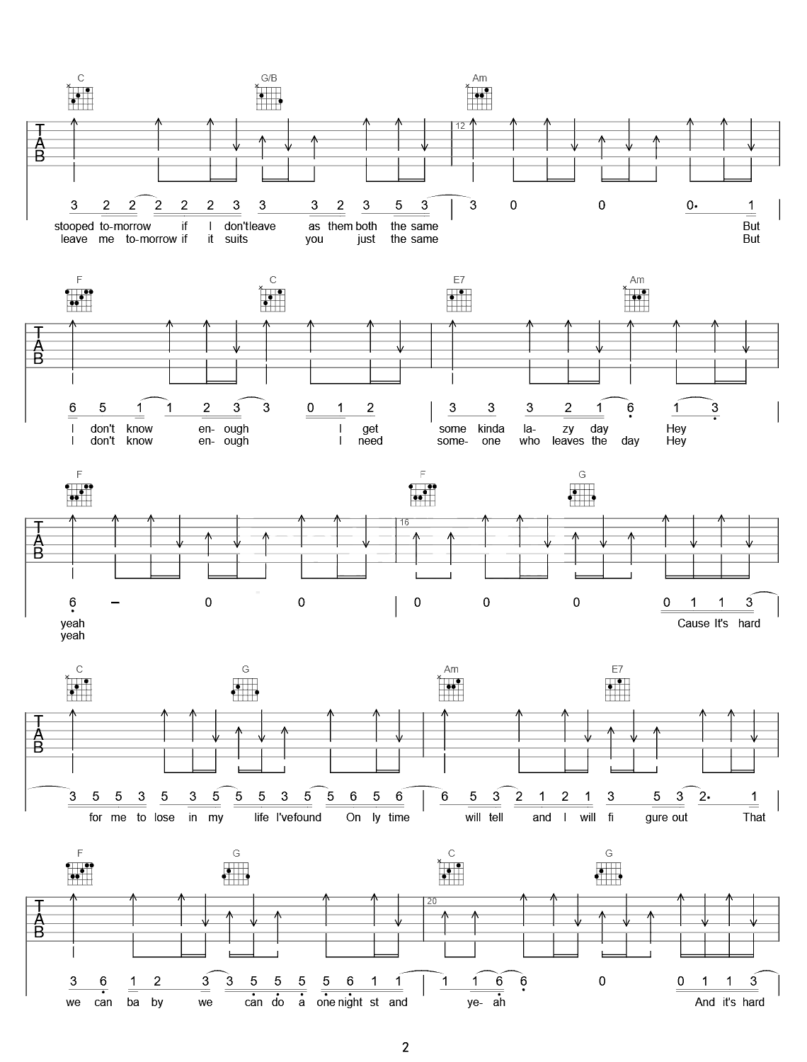 曲谱介绍: Free《FreeLoop》吉他弹唱谱,采用C调指法编配,共有3张高清图谱。