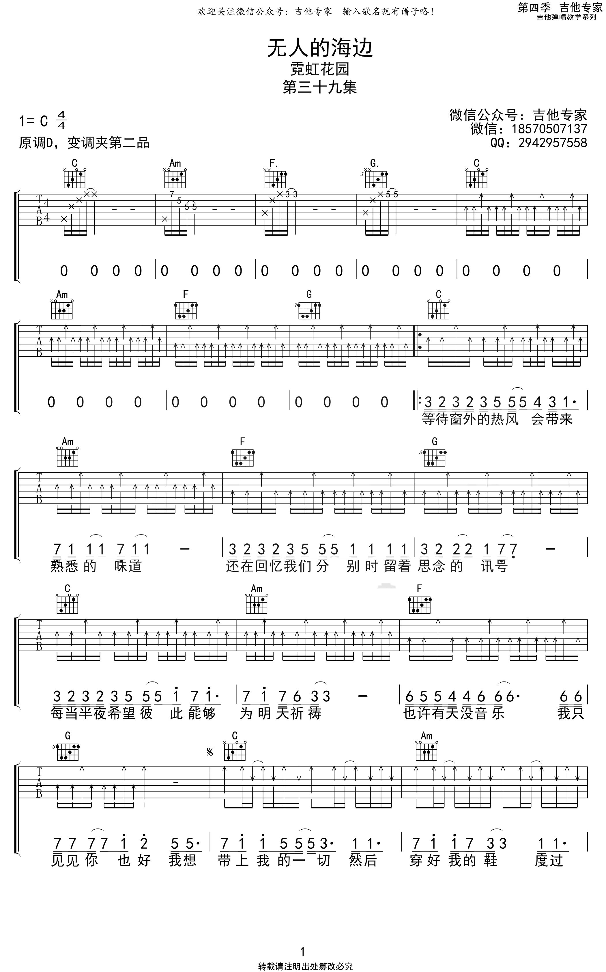 无人的海边吉他谱 - 霓虹花园 - C调吉他弹唱谱