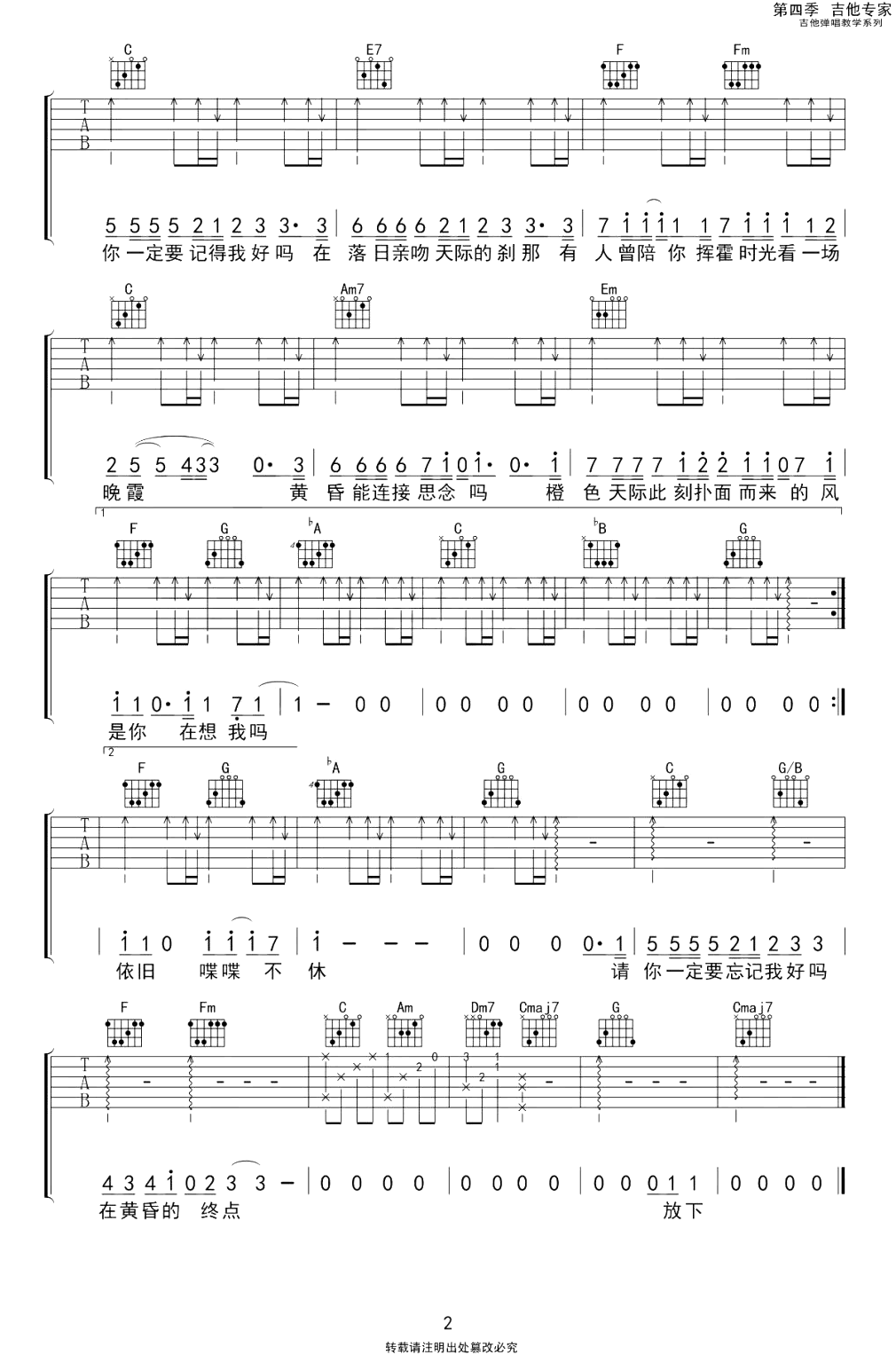 当前位置:琴谱网>吉他弹唱>请你一定要记得我好吗