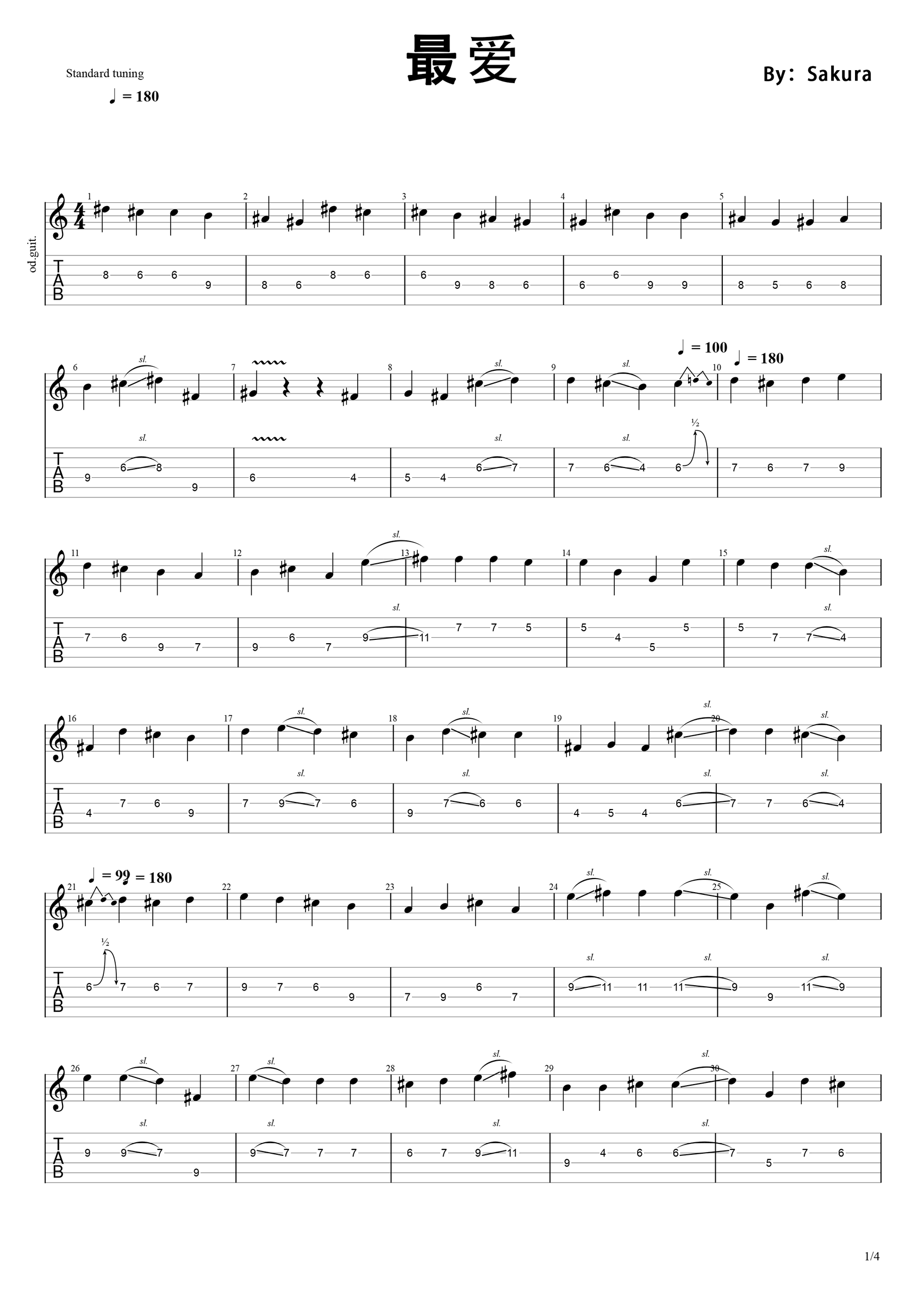 曲谱介绍: 岁月流金,经典不朽,周慧敏的一首粤语歌曲改编。最爱吉他谱solo,完整编配共四张高清图片谱例。《最爱》表达了对于爱情和浪漫的憧憬,好像婚礼宣誓时说的那样,无论健康疾病,无论富贵贫穷,一生一世都不离不弃。