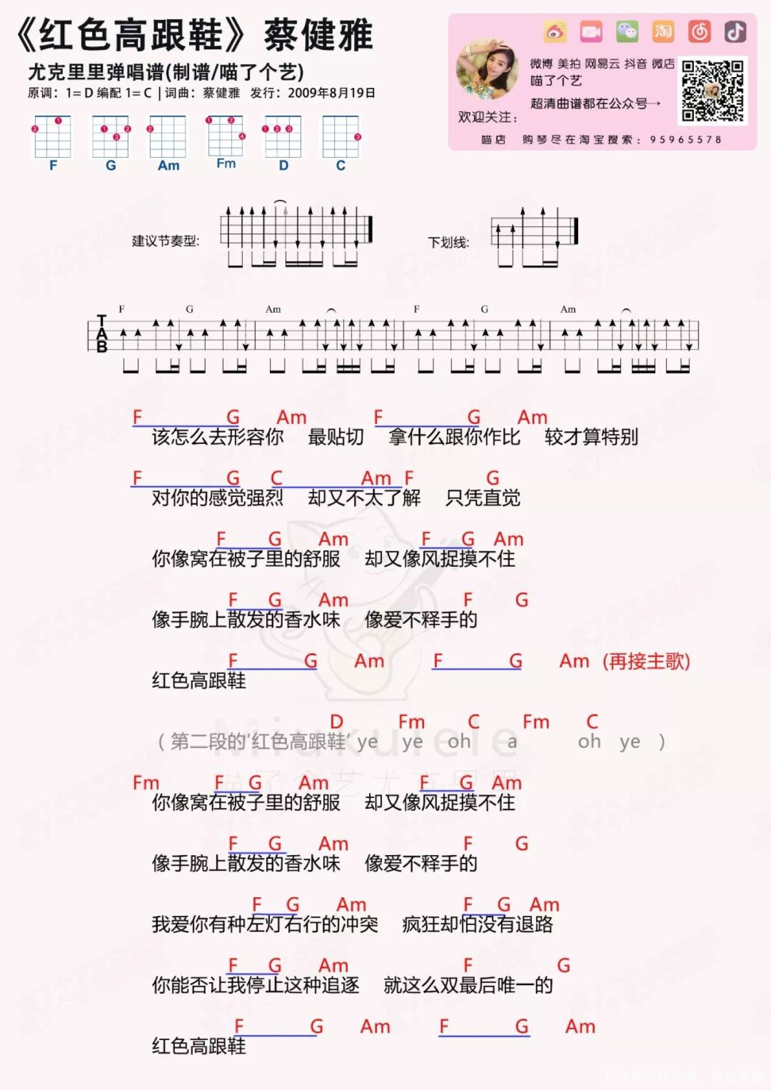 红色高跟鞋尤克里里谱 - 蔡健雅