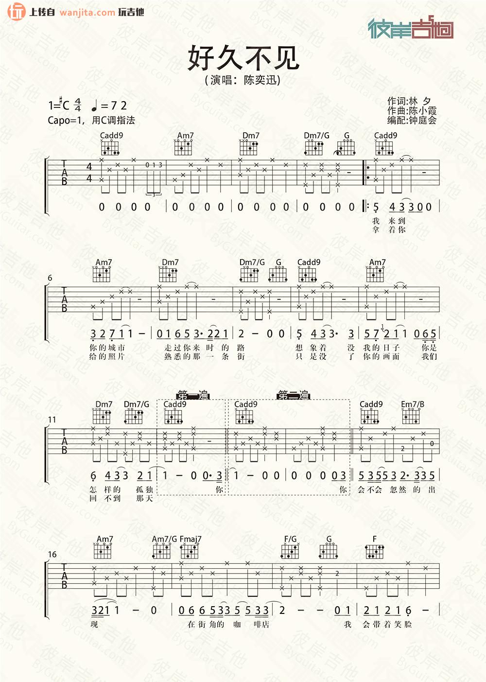 当前位置:琴谱网>吉他弹唱>好久不见
