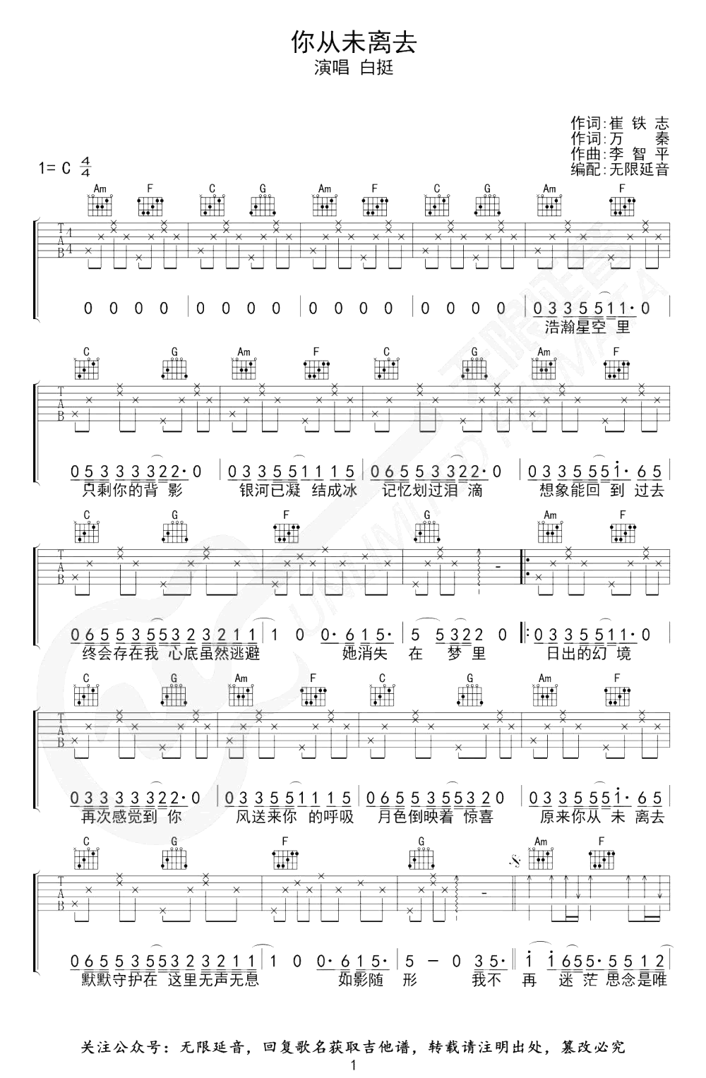 你从未离去吉他谱 - 白挺 - C调吉他弹唱谱