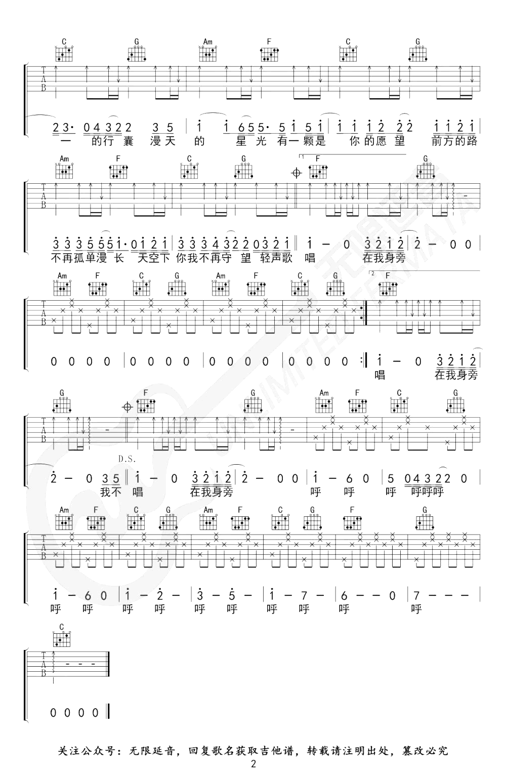 曲谱介绍: 白挺《你从未离去》吉他弹唱谱,采用C调指法编配,共有2张高清图谱,免翻页排版设计。