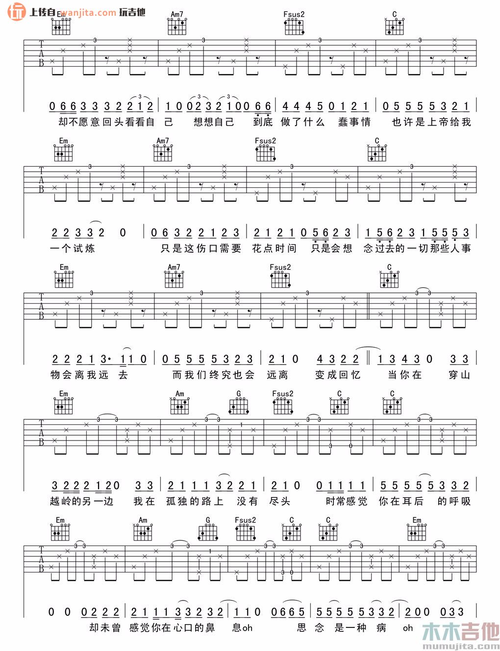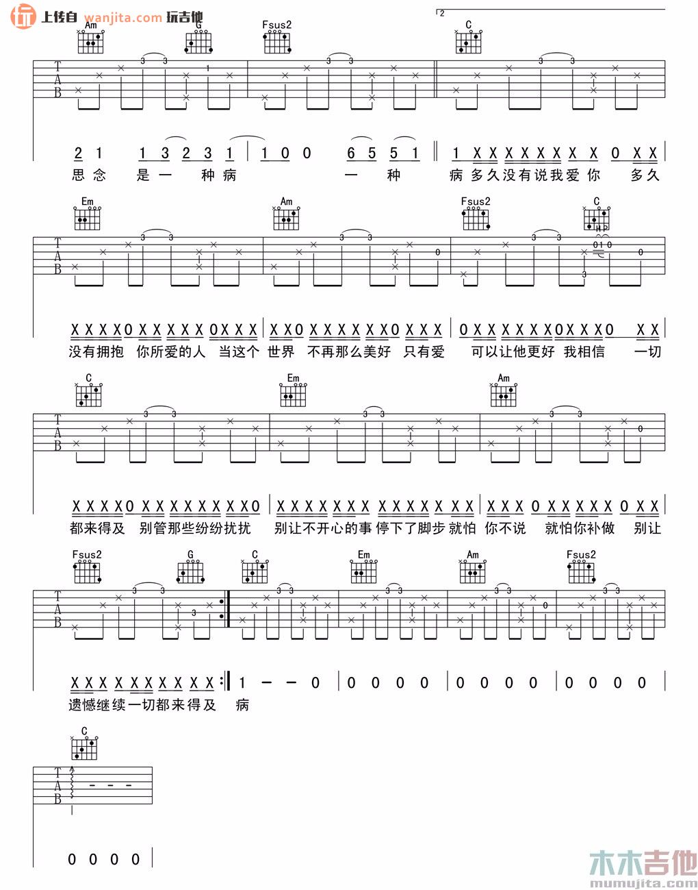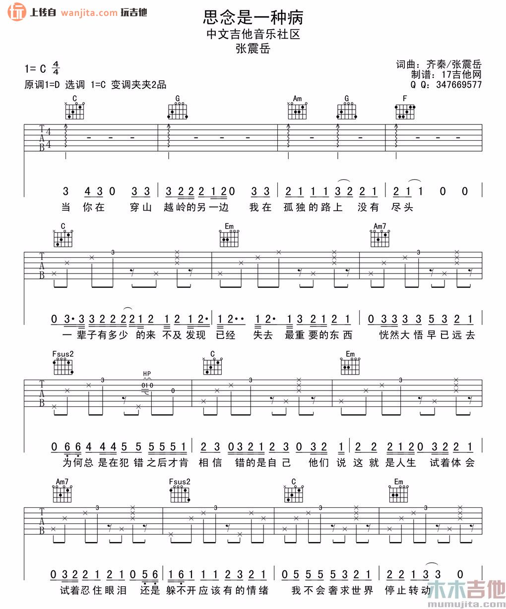 当前位置:琴谱网>吉他弹唱>思念是一种病