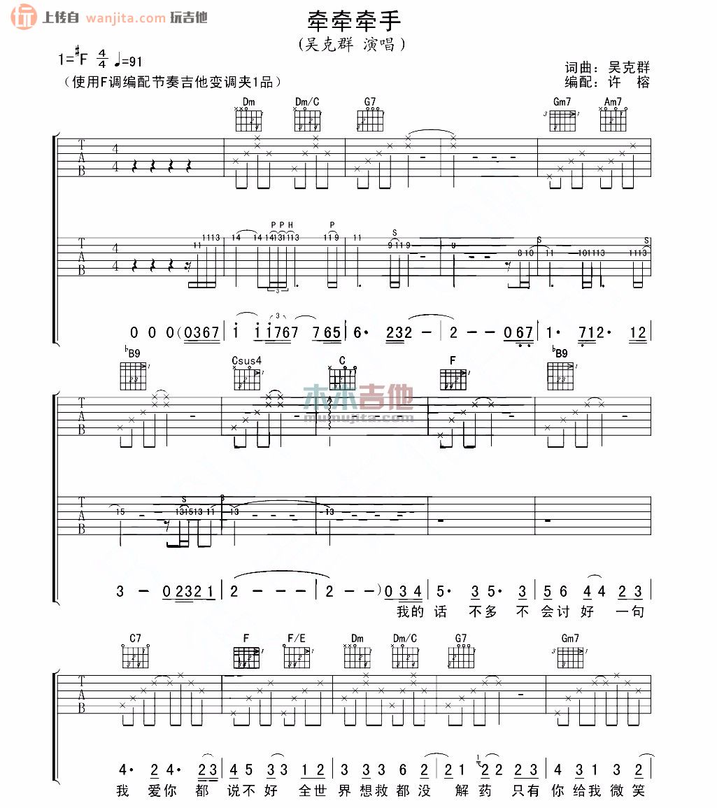 牵牵牵手吉他谱 - 吴克群 - F调吉他弹唱谱 - 原版