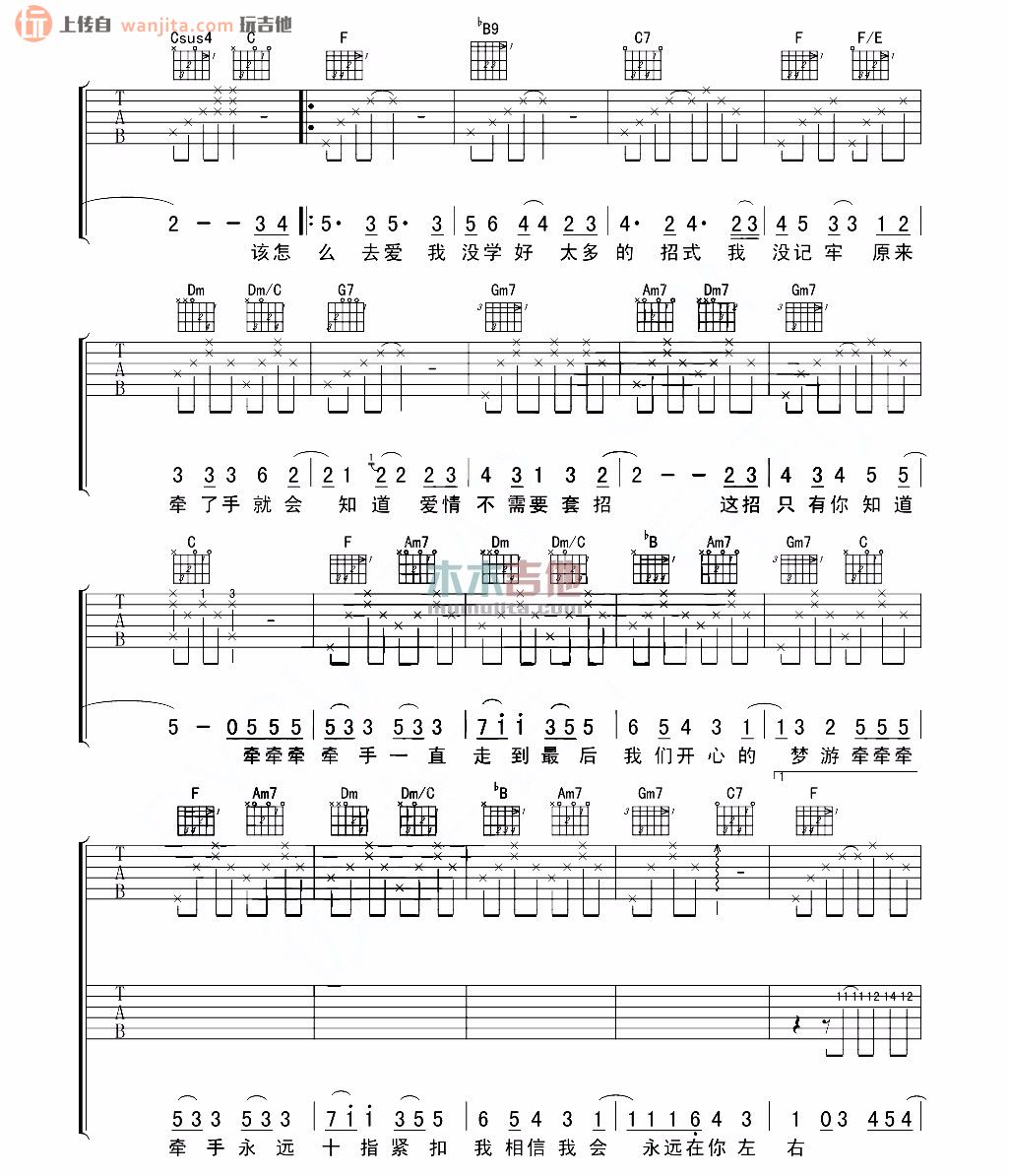 当前位置:琴谱网>吉他弹唱>牵牵牵手