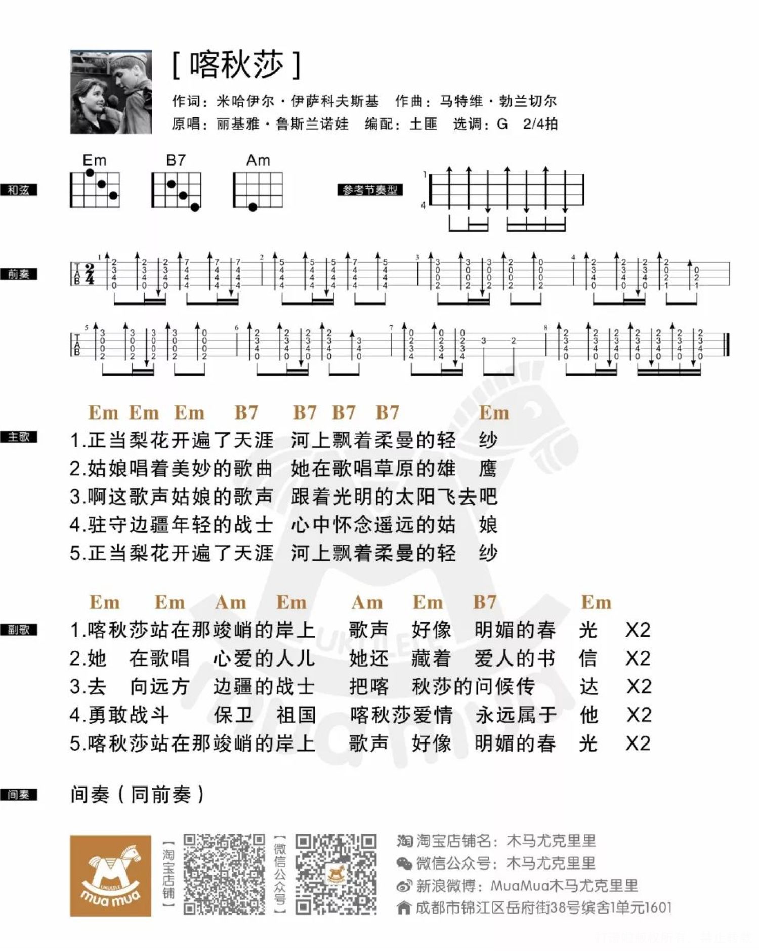 既然看球风险都这么大,看球之余我们就来继续了解苏俄历史上那些伟大的音乐吧。今天木马尤克里里为大家带来的同样也是一首耳熟能详的国民歌曲:《喀秋莎》(俄语:Катюша)