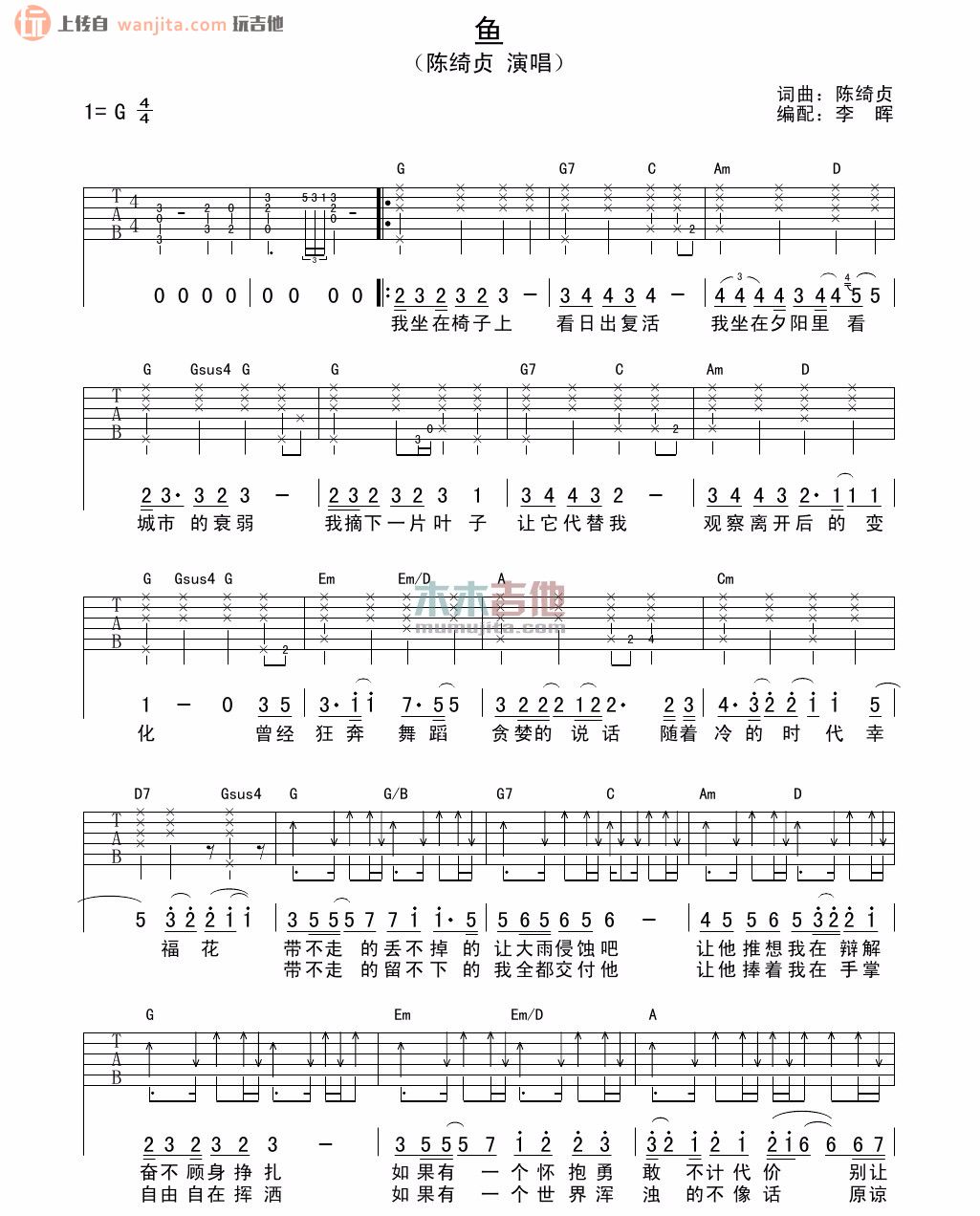 鱼吉他谱 - 陈绮贞 - G调吉他弹唱谱 - 原版