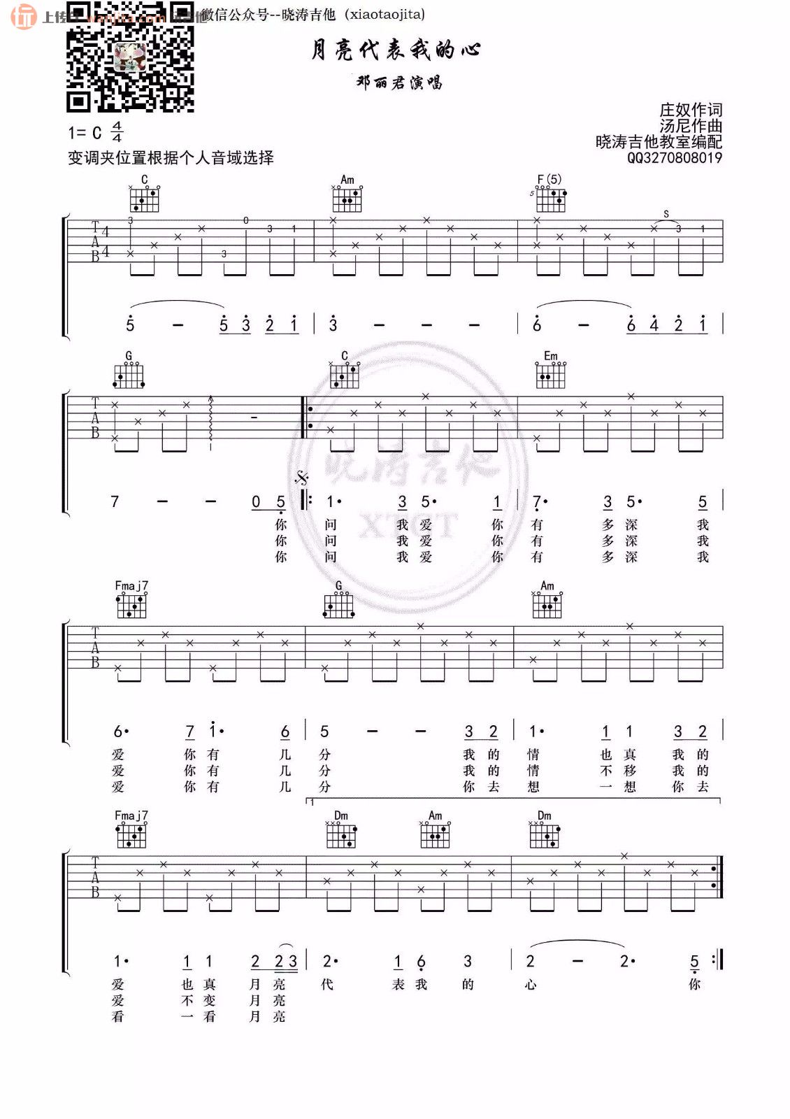 月亮代表我的心吉他谱 - 邓丽君 - C调吉他弹唱谱 - 原版