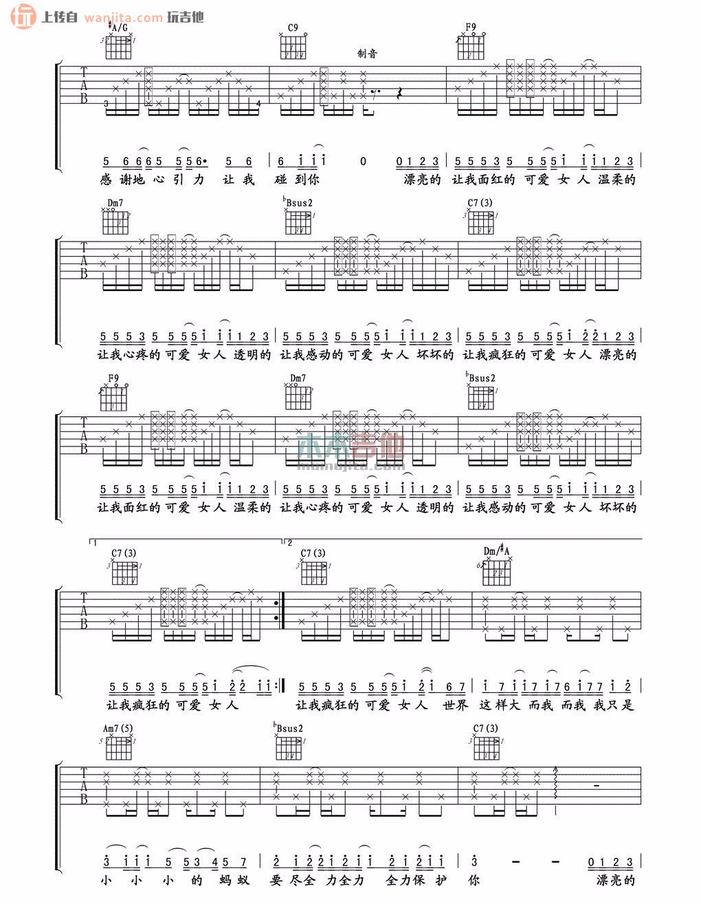 当前位置:琴谱网>吉他弹唱>可爱女人