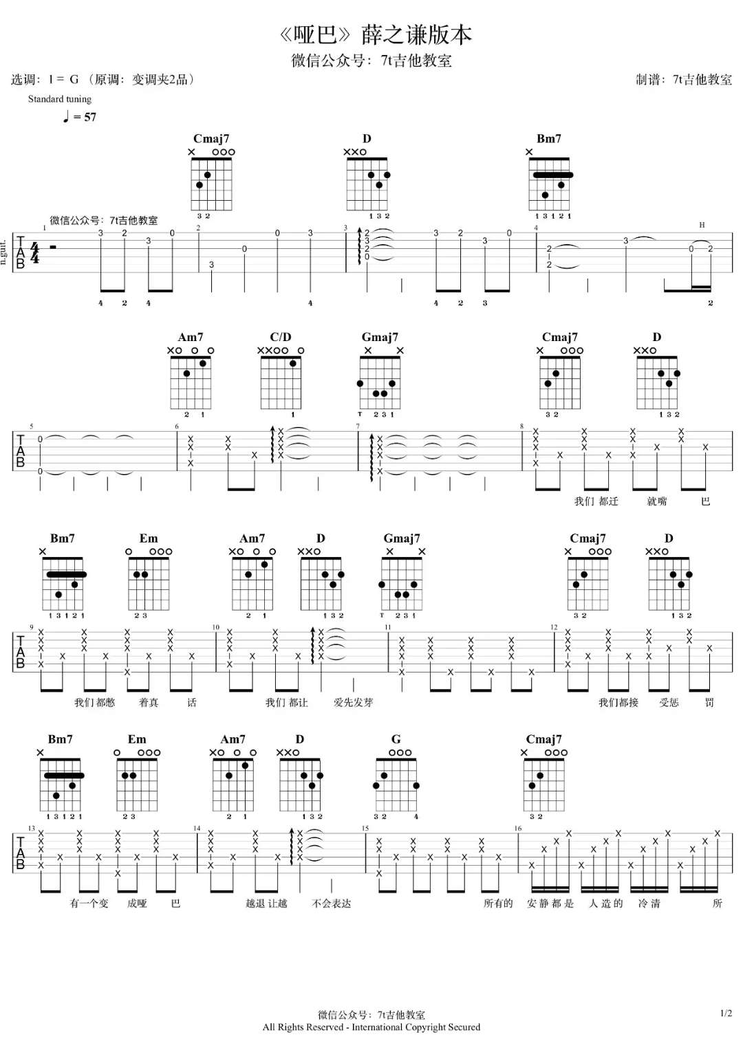 哑巴吉他谱 - 薛之谦 - G调吉他弹唱谱 - 原版