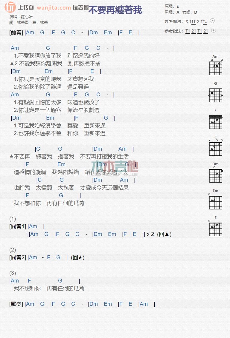 不要再缠着我吉他谱 - 庄心妍 - 吉他弹唱谱