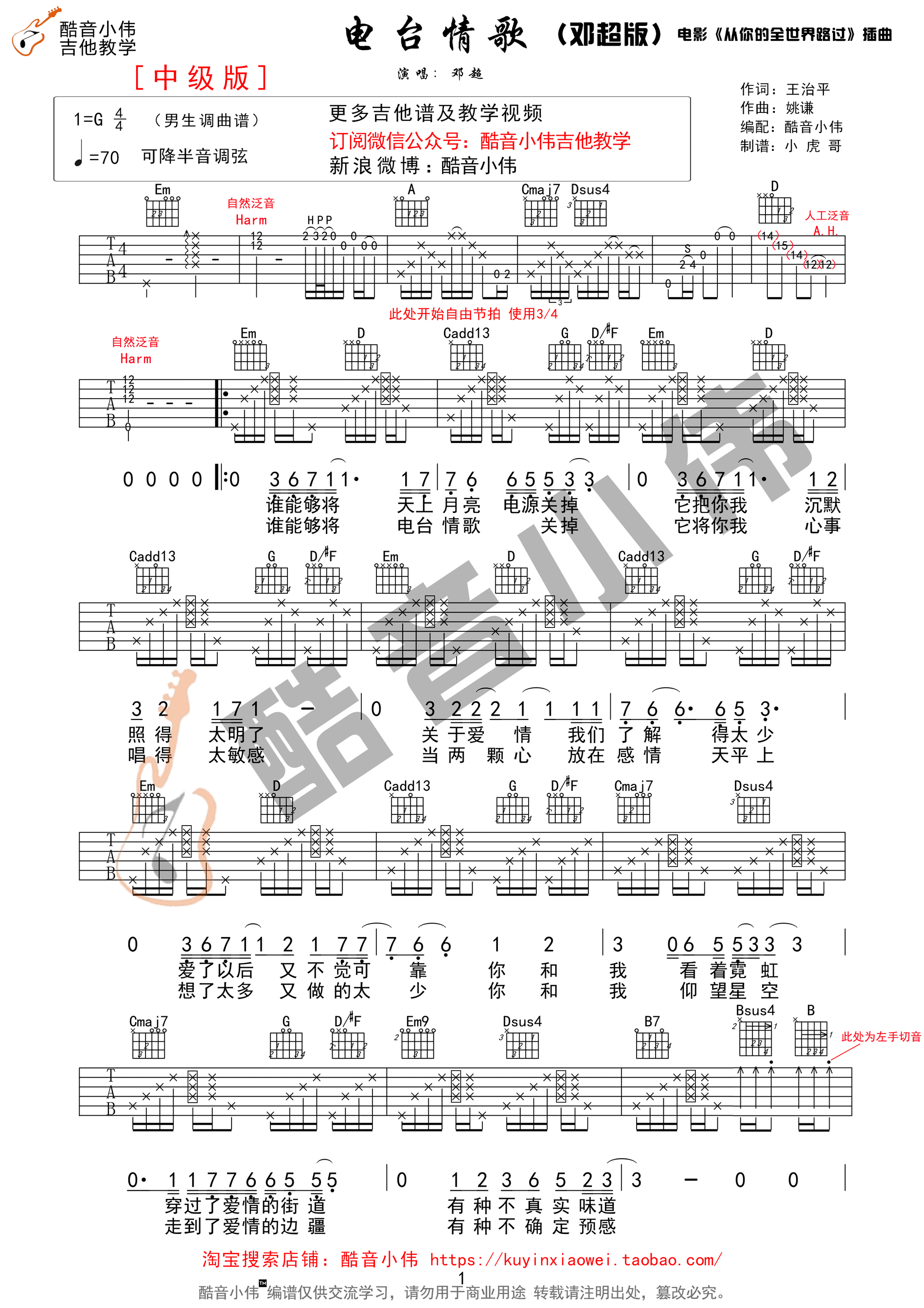 电台情歌吉他谱 - 吉他弹唱教程 - G调吉他弹唱谱 - 原版