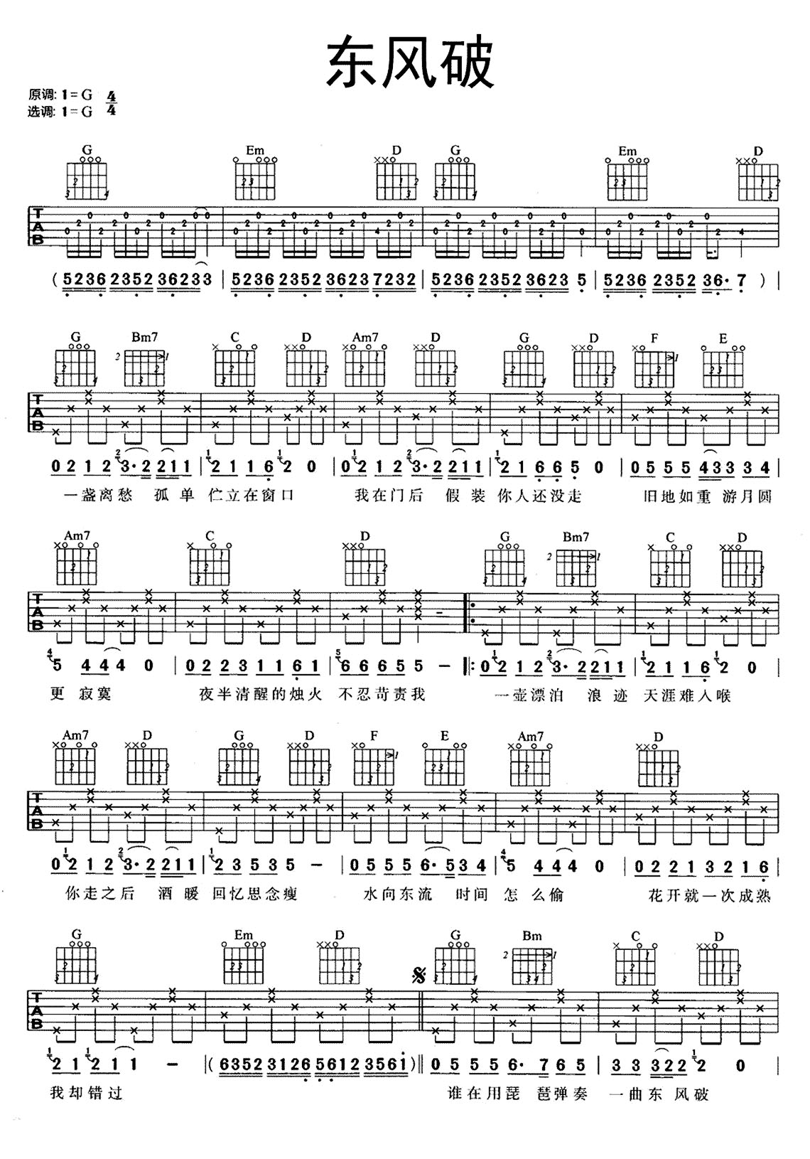 东风破吉他谱 - 周杰伦 - G调吉他弹唱谱