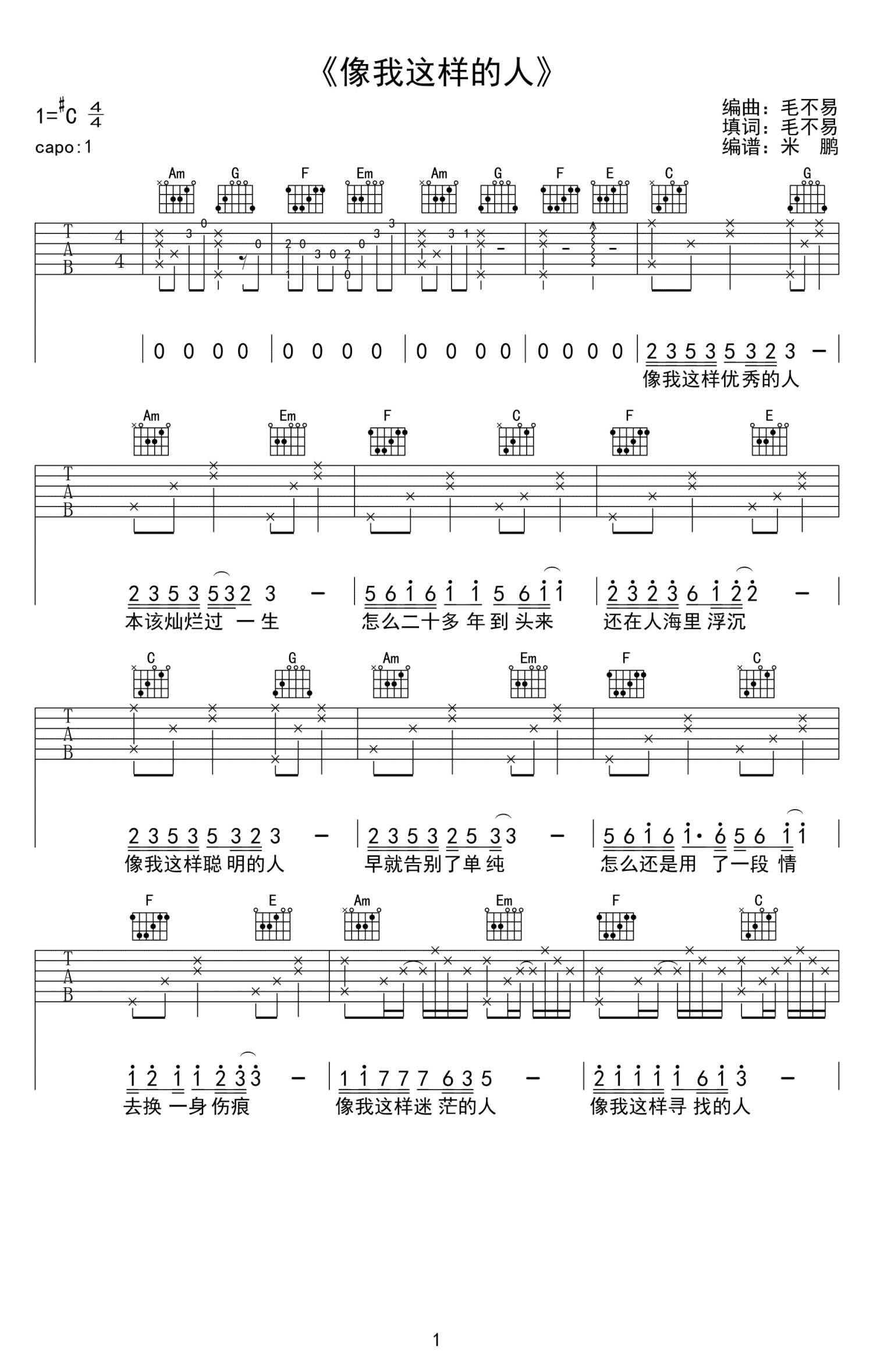像我这样的人吉他谱 - 毛不易 - C调吉他弹唱谱