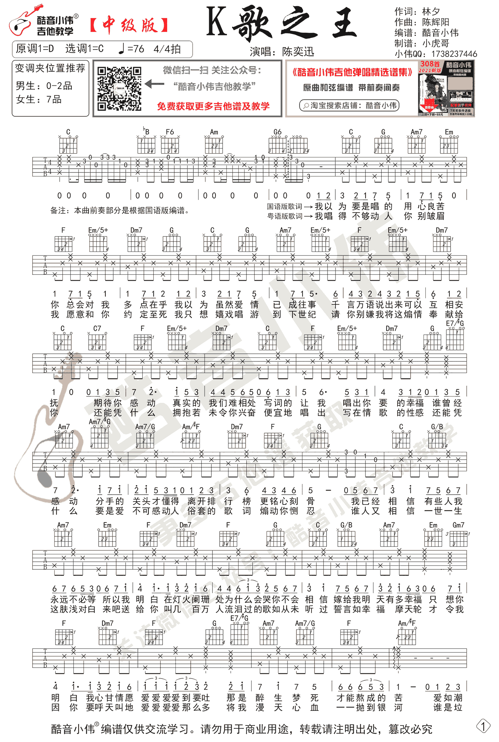 琴谱网为您精心推荐 K歌之王 高清图谱