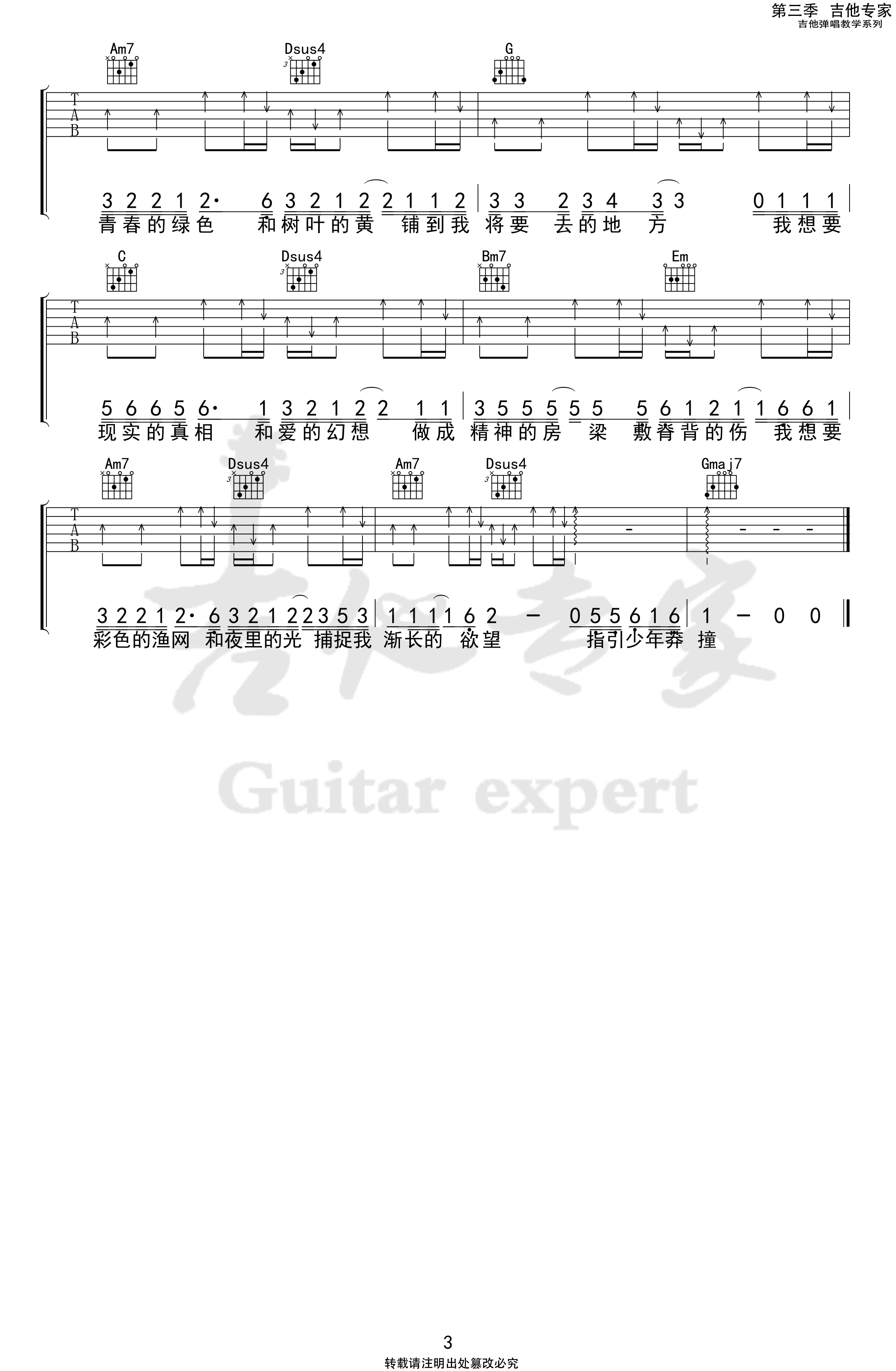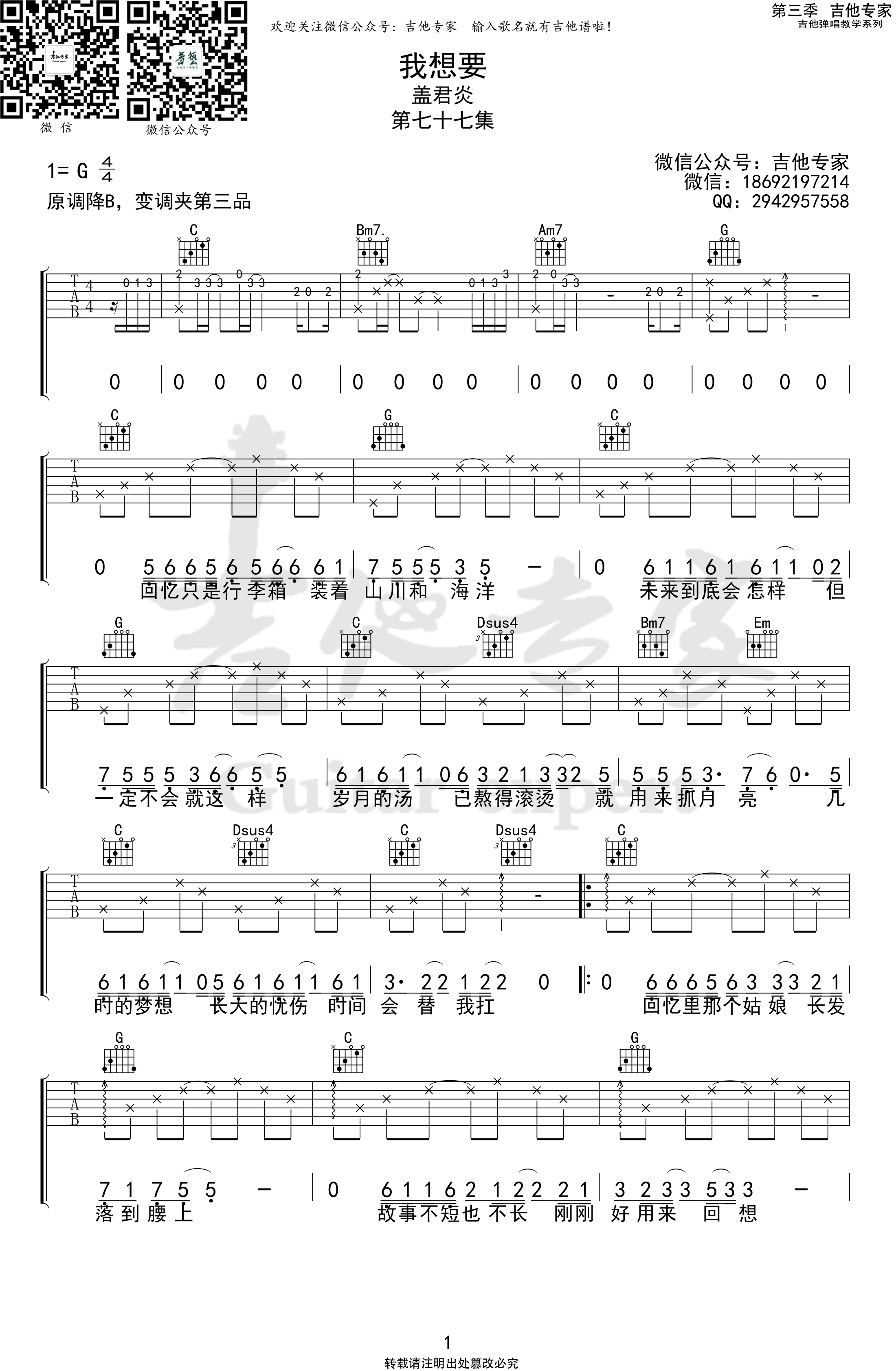 曲谱介绍: 盖君炎的一首网络爆火歌曲,我想要吉他谱,原调bB,选调G,变调夹第三品,高清图片六线谱共三张。我想要的东西有好多,可现实让我必须有舍得,长大了烦恼也多了,渐渐的 年少轻狂经不起考验,少年的莽撞终会趋于成熟,回忆里的那个人,想要你越来越好,而我也要蜕变了,因为想要是值得等待的。