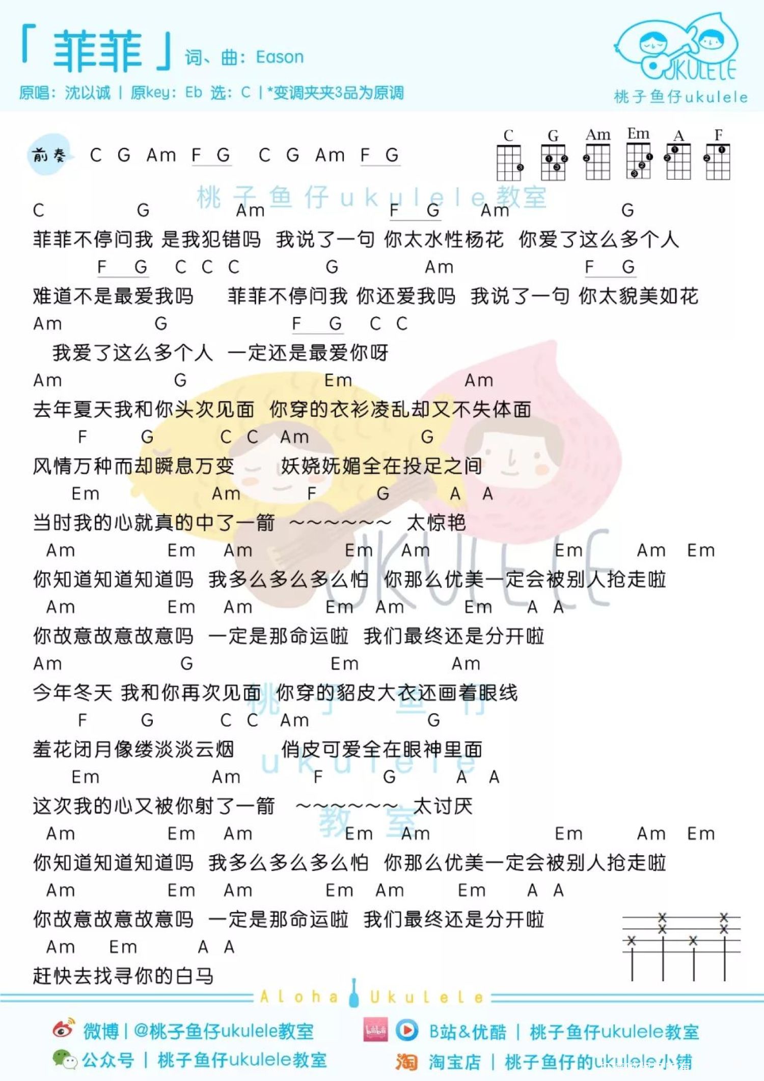 曲谱介绍: 《菲菲》尤克里里弹唱谱