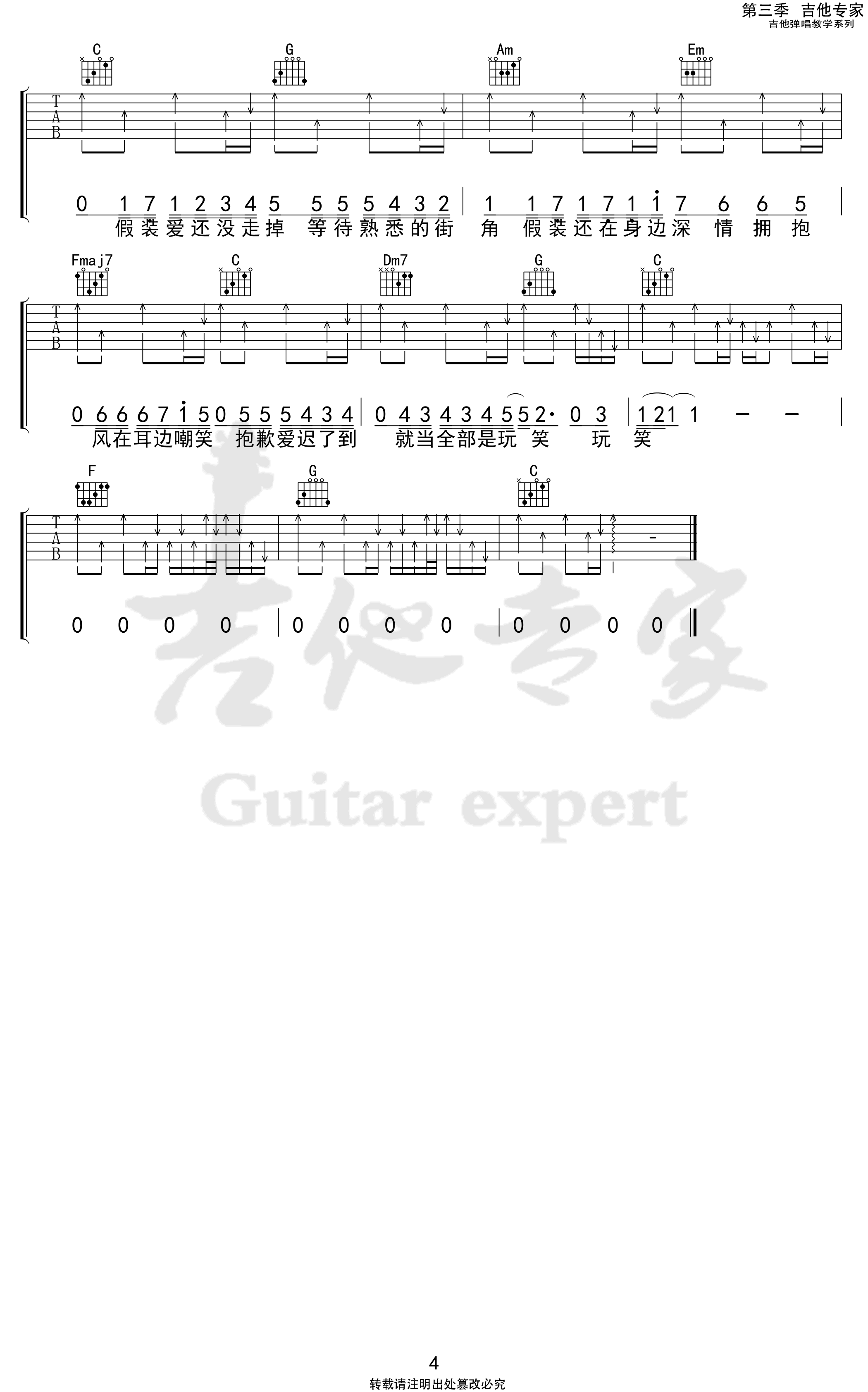 当前位置:琴谱网>吉他弹唱>假装