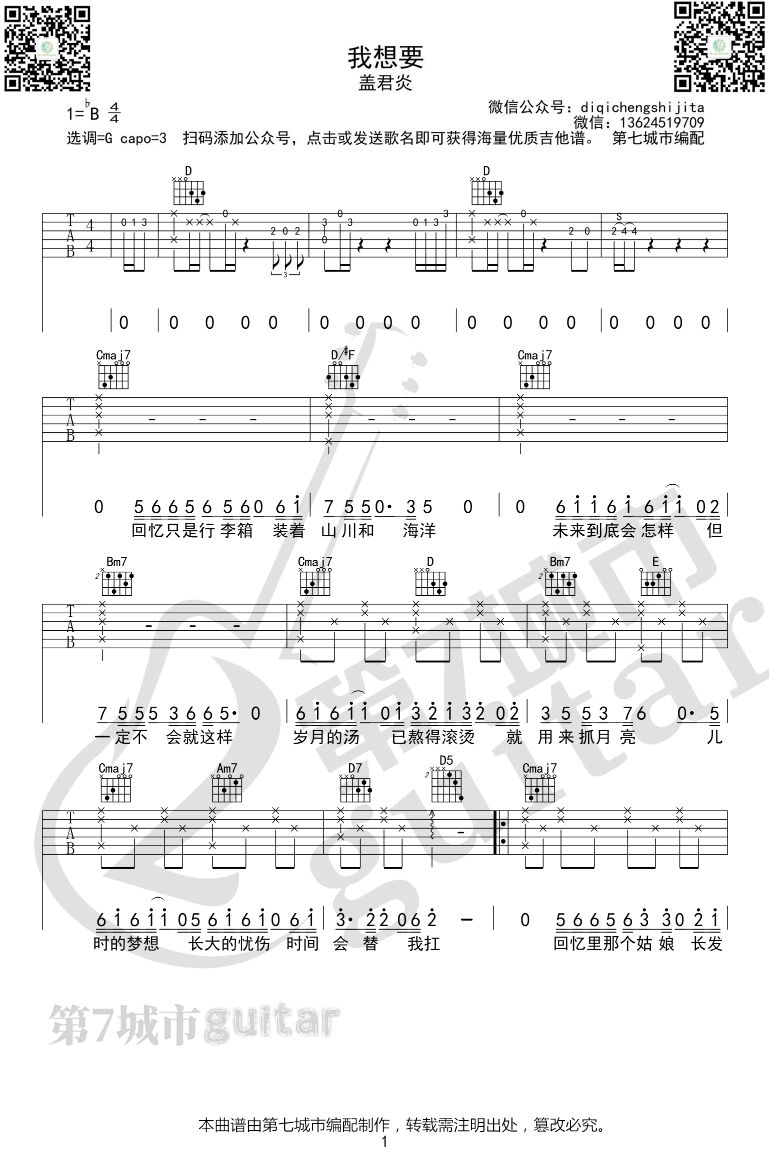 我想要吉他谱 - 盖君炎 - G调吉他弹唱谱