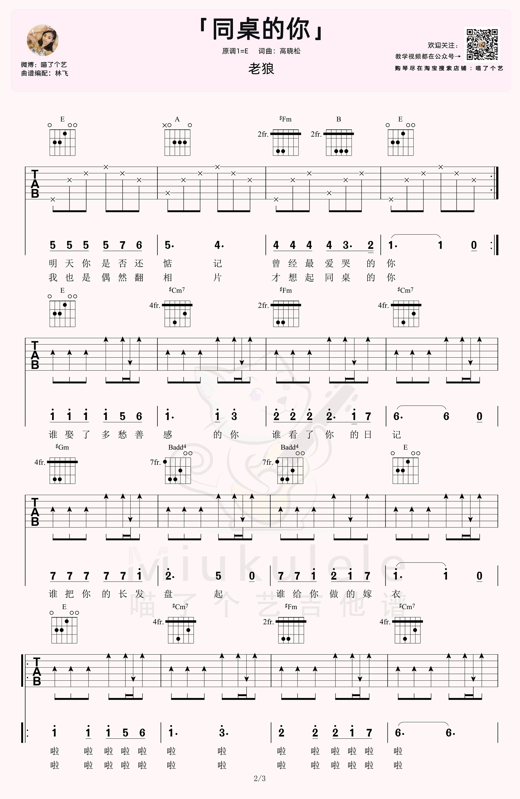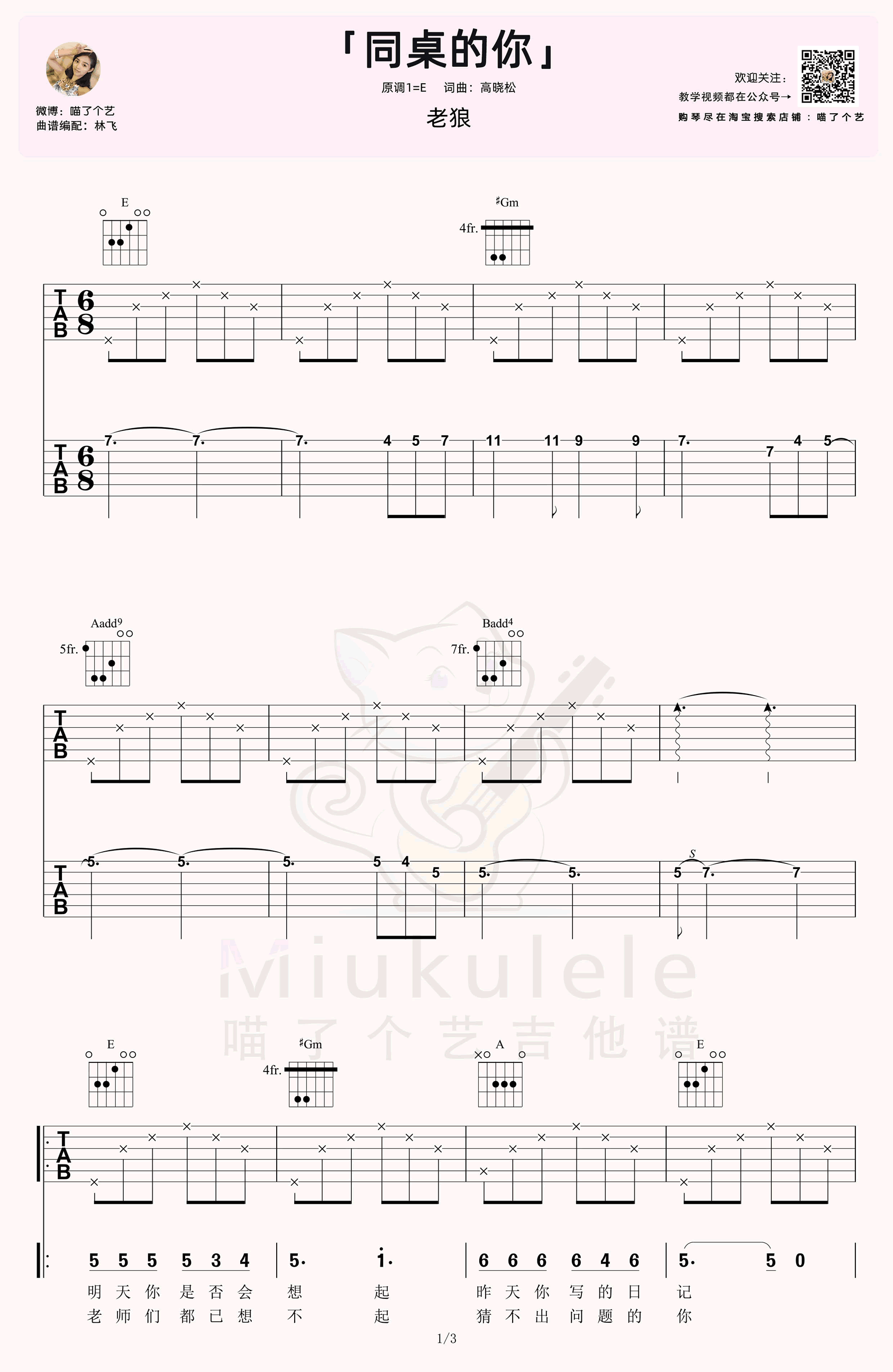 曲谱介绍:   一首经典校园民谣歌曲,老狼《同桌的你》吉他谱,E调指法编配,弹唱六线谱共三张高清图片谱。你总说毕业遥遥无期,转眼就各奔东西。一首老歌唤起了多少人对学生时代同桌的回忆?为了营造毕业的氛围,拉林老师和制作一起弹唱校园民谣里的青春呐,永远都歌颂不完!