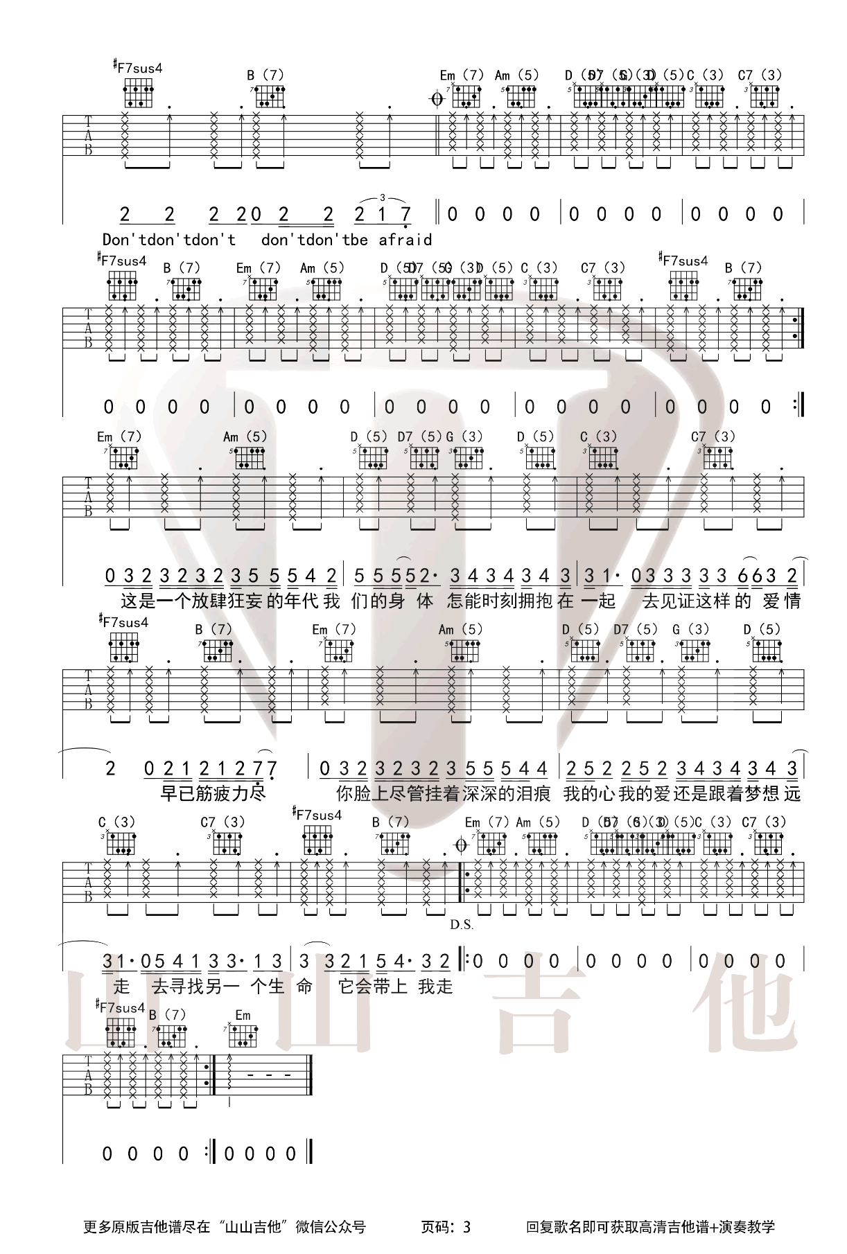 曲谱介绍: 海龟先生《男孩别哭》吉他弹唱谱,采用G调指法编配,共有3张高清图谱。