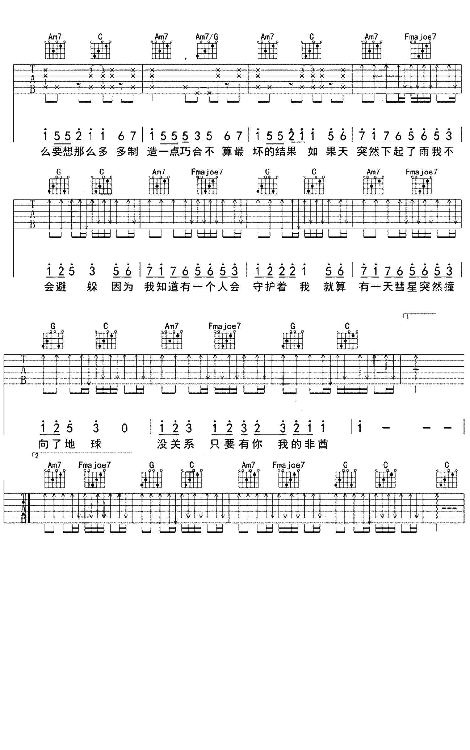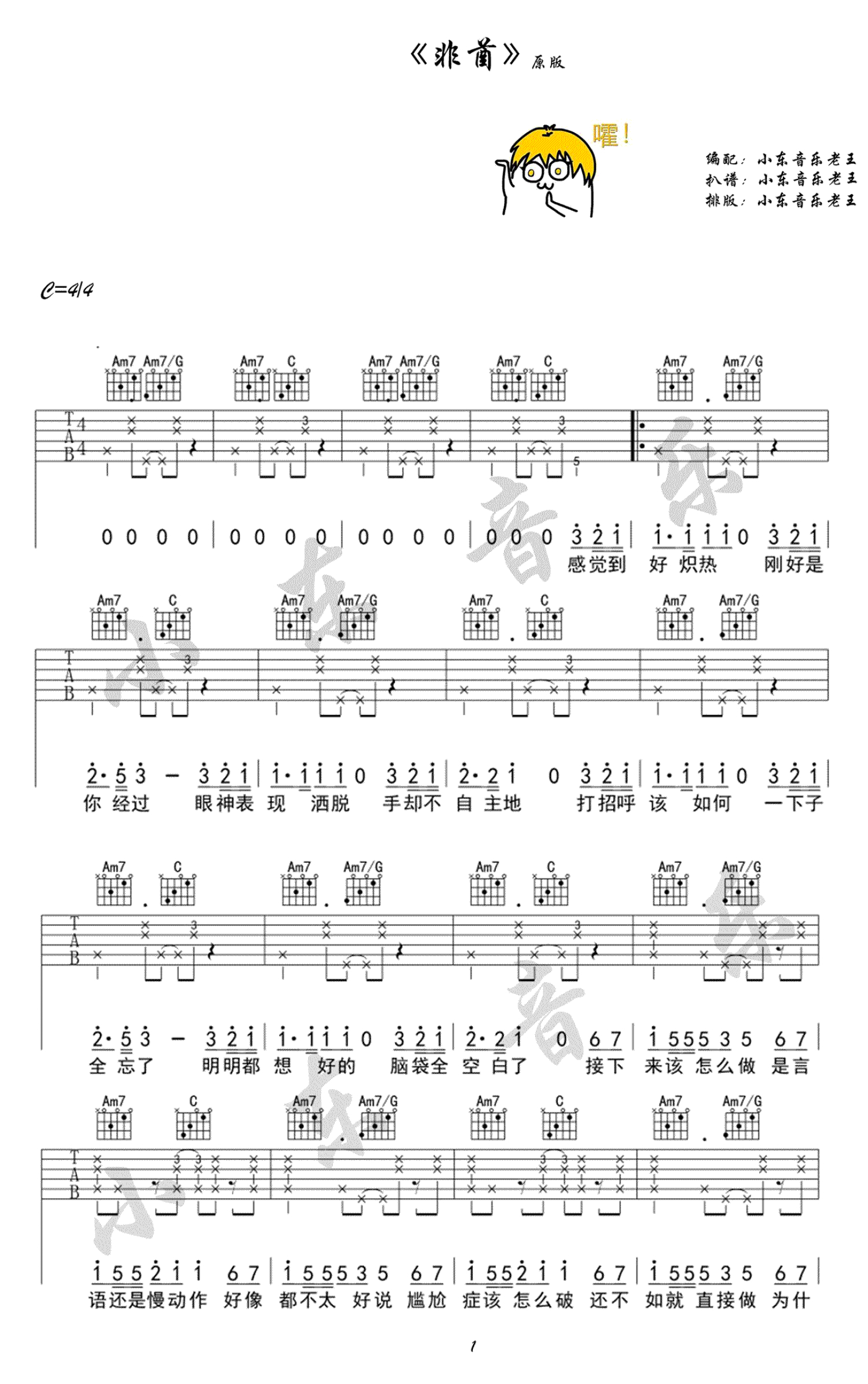 非酋吉他谱 - 薛明媛/朱贺 - 吉他弹唱谱
