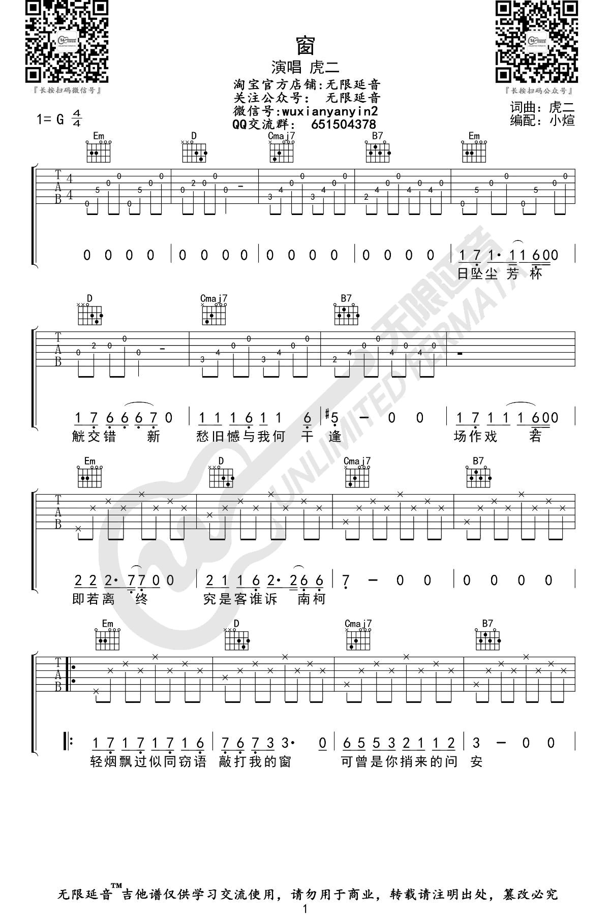 窗吉他谱 - 虎二 - G调吉他弹唱谱