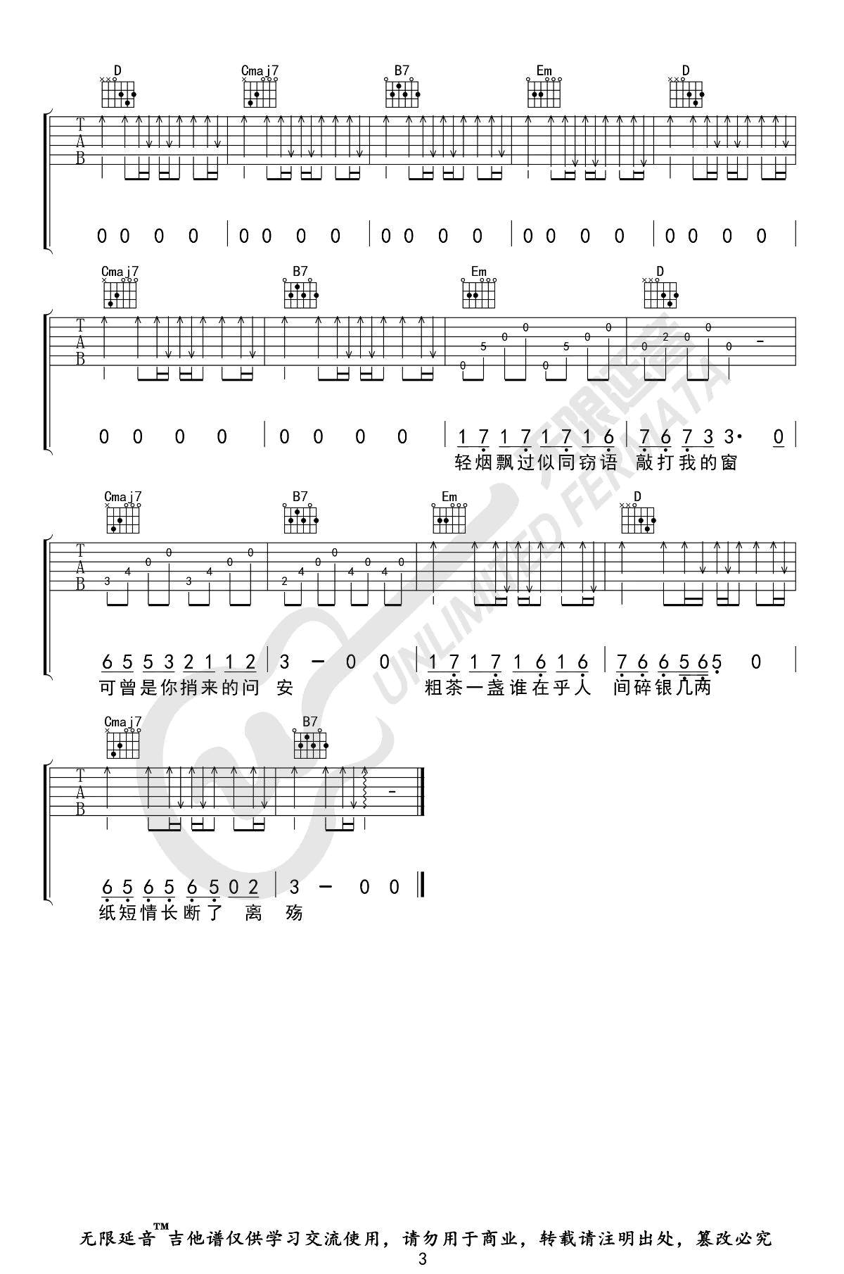 曲谱介绍: 虎二《窗》吉他弹唱谱,采用G调指法编配,共有3张高清图谱。