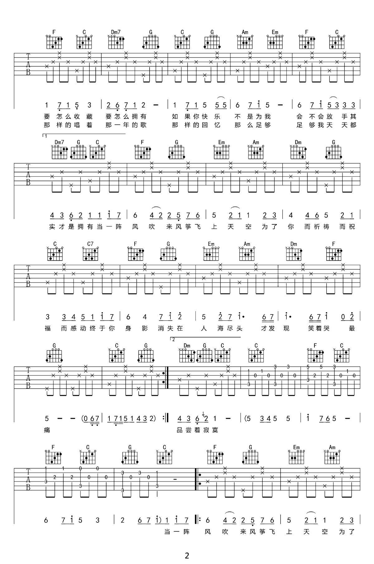 曲谱介绍: 五月天的一首安静的歌,前奏一起耳朵就沦陷了。知足吉他谱,原调E选调C转D,Capo夹四品,三张弹唱图片谱。青绿的山丘、无缘的恋人、高飞的风筝和至爱远走的背影。轻柔的旋律下唱出了放手的遗憾,不是每个故事都有完美的结局,有时知足也是一种幸福。
