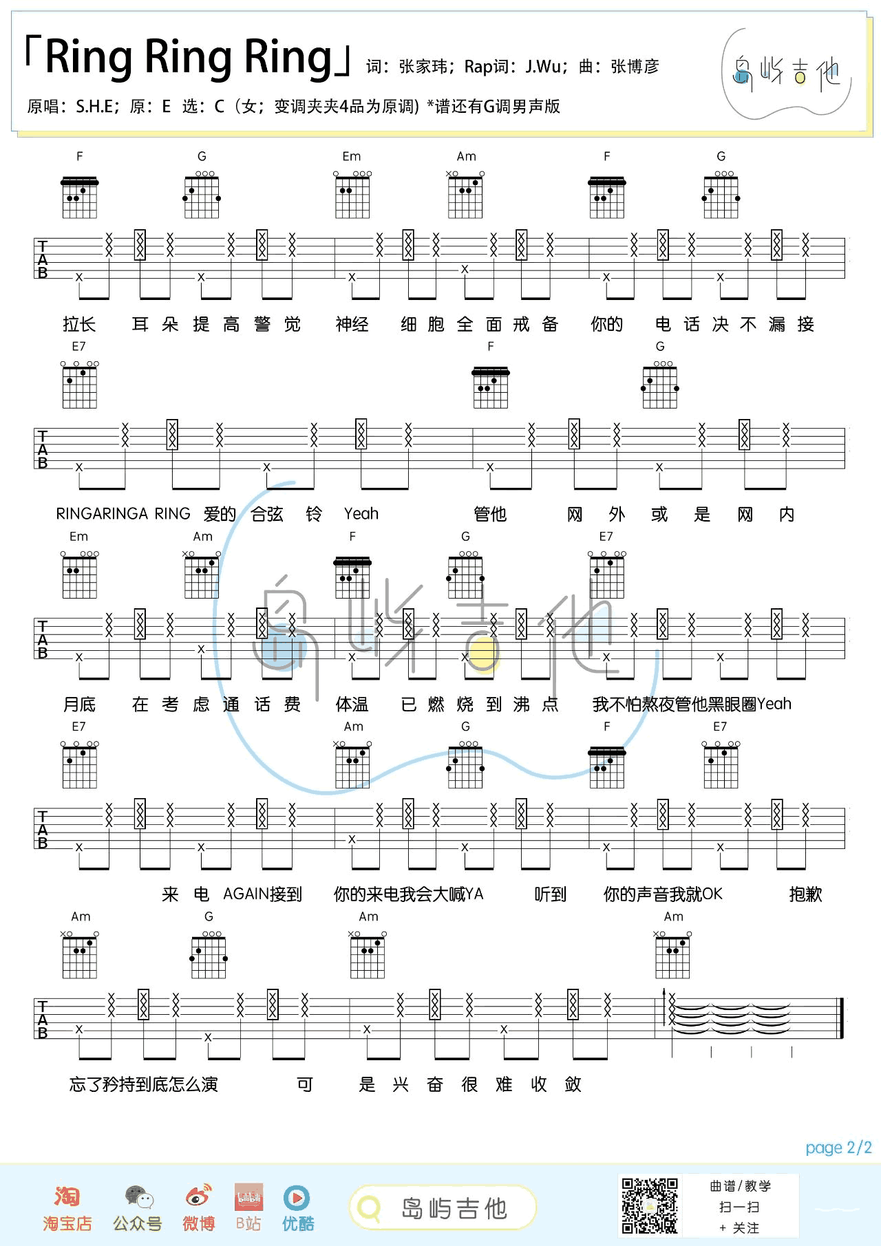 Ring Ring Ring吉他谱 - S.H.E - C调吉他弹唱谱