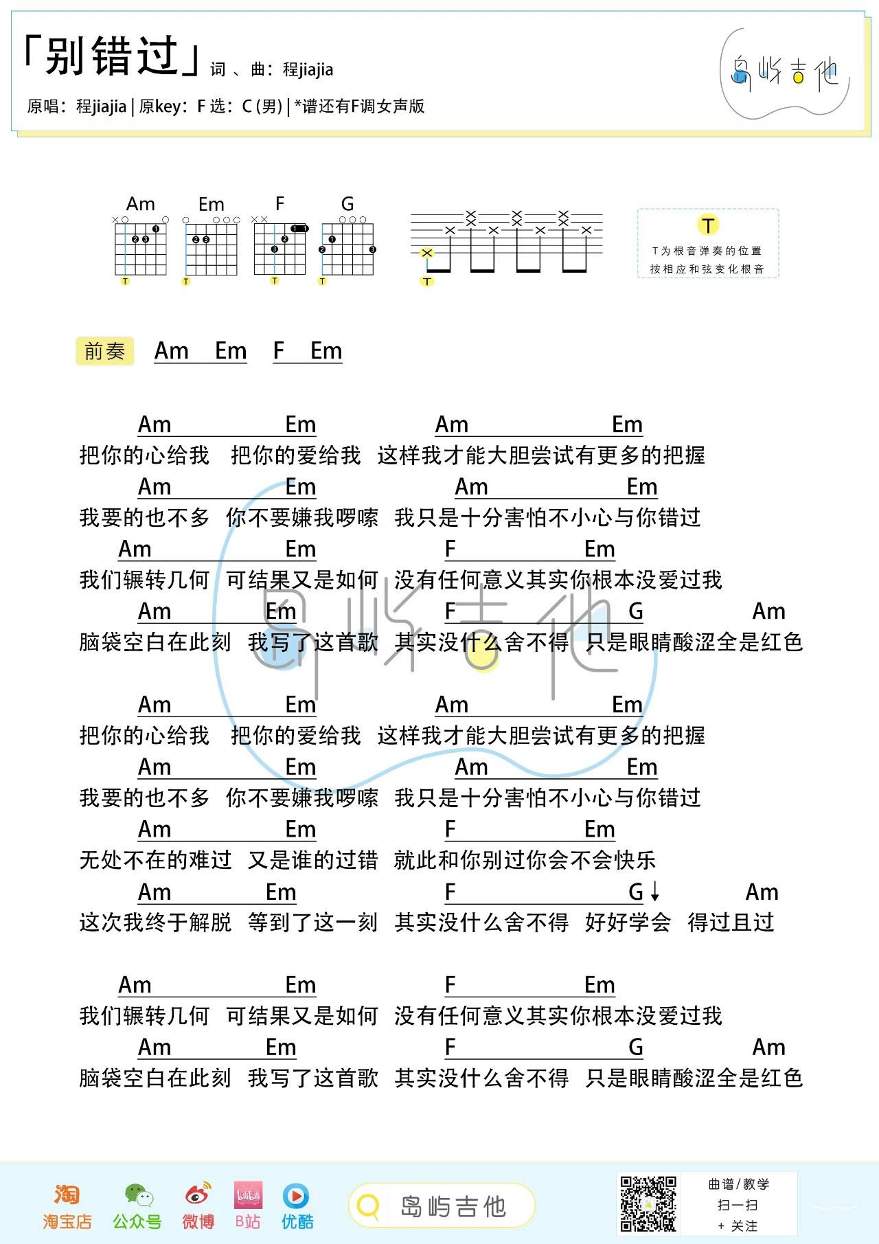 别错过吉他谱 - 程jiajia - 吉他弹唱谱
