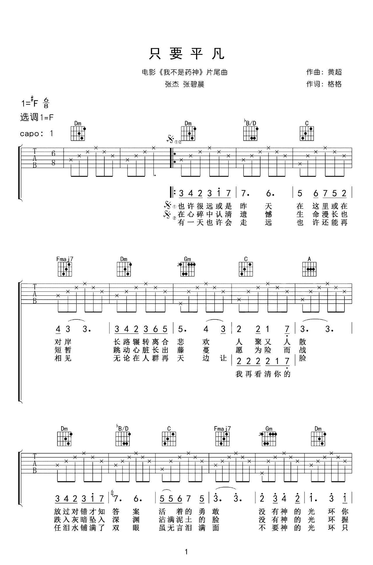 当前位置:琴谱网>吉他弹唱>只要平凡