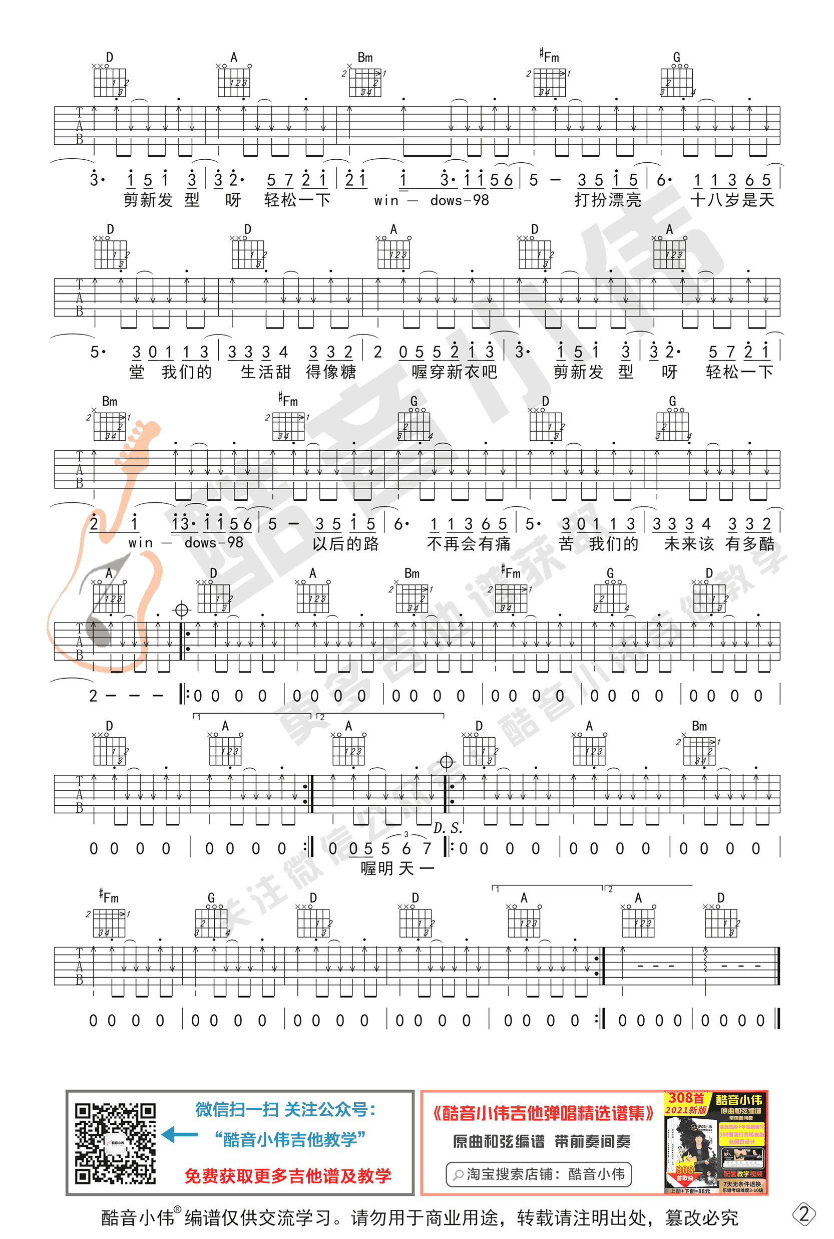 曲谱介绍: 这首诞生在二十年前的歌,如今听来却另有一番滋味。在《乐队的夏天》盘尼西林翻唱让它重新火了。New Boy吉他谱,D调指法,初级进阶版编配,变调夹位置推荐,男生不夹 女生5-7品。New Boy六线谱,两张高清图片谱,随谱附上弹唱教学视频。轻快的旋律响起,愿在歌声中,我们依然有一往无前的希望奔向不可知的未来。